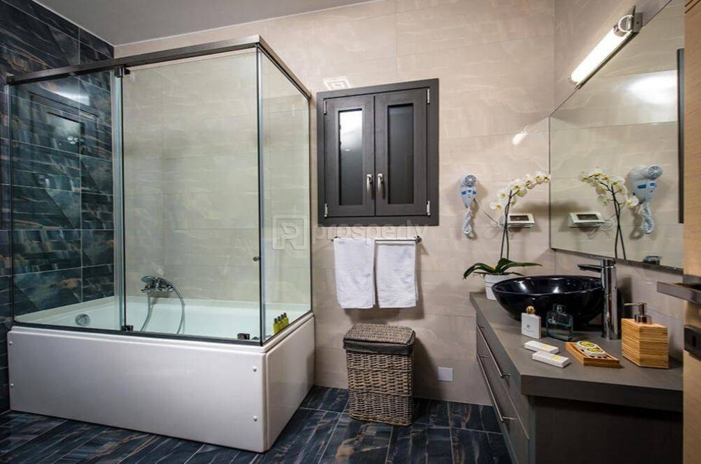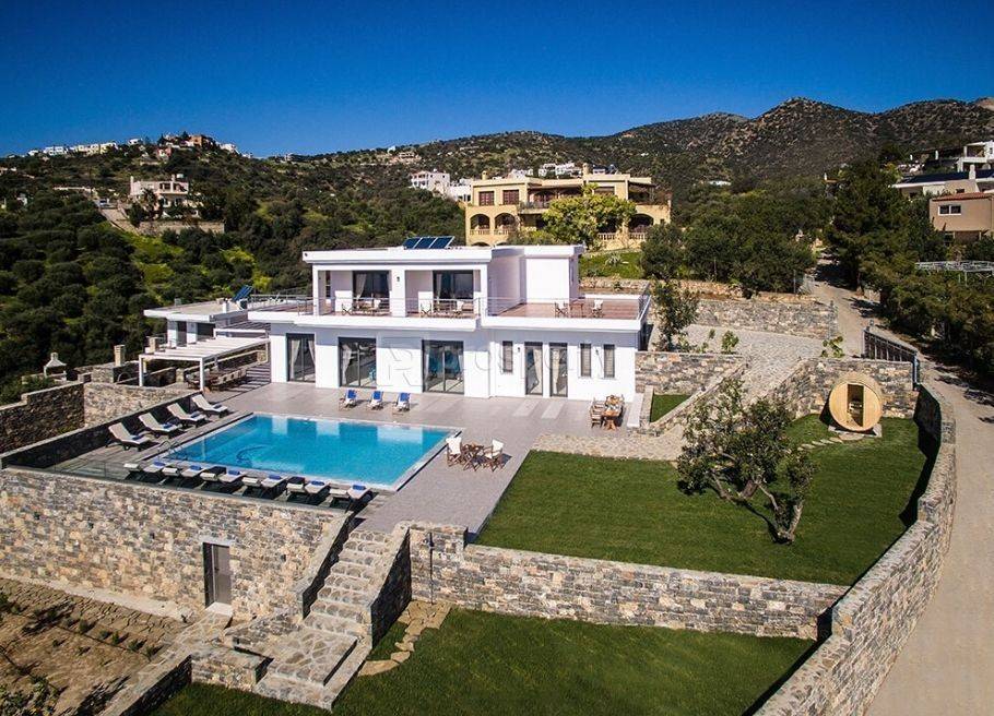 The Villa is a brand new, modern villa, built in 2016. This elegant and luxurious residence is situated in a privileged location on the hillside just outside the beautiful town of Agios Nikolaos. Space: The Villa can accommodate up to 11 people in 5 bedrooms and offers various facilities, modern appliances, and stylish interiors to ensure a comfortable stay. It features an outdoor area of 270 sqm, with a well-maintained lawn garden, a huge swimming pool, barbecue area, and an outdoor sauna. The Villa has an interior space of 307 sqm and is built on two levels. The ground floor consists of an open-plan area with large openings that allow sunlight into the house, offering views of the pool and garden, and providing stunning views of the Mirabello Bay, the island of Agii Pantes, and the Sitia mountains. The living room features a fireplace, two sitting areas with comfortable sofas, and a smart TV. Adjacent is the dining area, a beautiful kitchen equipped with a range of modern appliances, where you can prepare breakfast or dinner for your loved ones. On this level, there are also two bedrooms (which can be connected with a double bed) sharing a shower bathroom and one bedroom with three single beds and a private bathroom with a bathtub. On the upper floor, there are two bedrooms. Each one features a king-size bed, a walk-in wardrobe, and its own bathroom with a bathtub with a jacuzzi. These rooms have access to a large furnished terrace with stunning views of the sea and the port of Agios Nikolaos! All bedrooms are equipped with a TV and air conditioning. The villa is located on a hillside in the suburbs of the picturesque town of Agios Nikolaos and offers stunning views of the Mirabello Bay and the Sitia mountains. The private heated swimming pool (68 sqm) welcomes you to cool off during a hot summer day, while modern and comfortable sun loungers, if that's not enough to relax you, you can also spend some time in the outdoor sauna, which will surely help you relax from stress and rejuvenate! Outside the main living room, there is a spacious furnished terrace and a shaded dining area with barbecue and oven, an ideal place to gather with friends or family and enjoy a homemade dinner under the stars. The Villa is surrounded by a 270 sqm lawn garden with local trees and flowers, while on the upper floor, you will find a spacious furnished terrace overlooking the pool and garden. For those who prefer to swim in the sea, the Avania Beach is just 500 meters away from the villa. https://marketplace.theprosperty.com/listings/8007 ☎️ 210 6812500