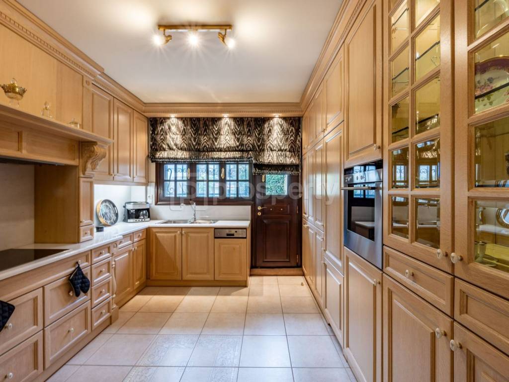 Luxurious, stately maisonette, of excellent construction, is located on a corner plot with a total area of 1000sqm with 4 residences, in a privileged area of Nea Kifissia on a quiet street, near the market of Tatoiou street which facilitates everyday life. The property stands out from the outside, from its neoclassical architecture, which combines stone-built balconies and solid wooden frames, to the beautiful and well-kept garden. On the ground floor there is a reception area with a fireplace decorated with rare onyx type marble, a dining room, and an open plan kitchen. The built-in composition of the kitchen is made of solid wood, handmade by a top carpenter. On this level there are terraces with access to a lawned garden. Climbing the wooden, solid oak staircase with a handrail, we reach the first floor. Here we find two bedrooms with a large bathroom, and a master bedroom with its own spacious bathroom. All rooms have oak floors, balconies overlooking the garden, are bright and have built-in massive, excellent quality wardrobes. On the upper floor there is a very bright attic with a terrace that can accommodate a comfortable office or gym. Going down the stairs to the basement we find the guest toilet. The basement area has an independent entrance from the garden and consists of a living room with a fireplace, a dining room and a kitchen built by the same carpenter. The property also has gas heating, security doors, double glazing with solid timber frames, large storage, and a laundry room. It is worth noting that the quality of all materials and the construction of the property is excellent. https://marketplace.theprosperty.com/listings/8028 ☎️ 210 6812500.