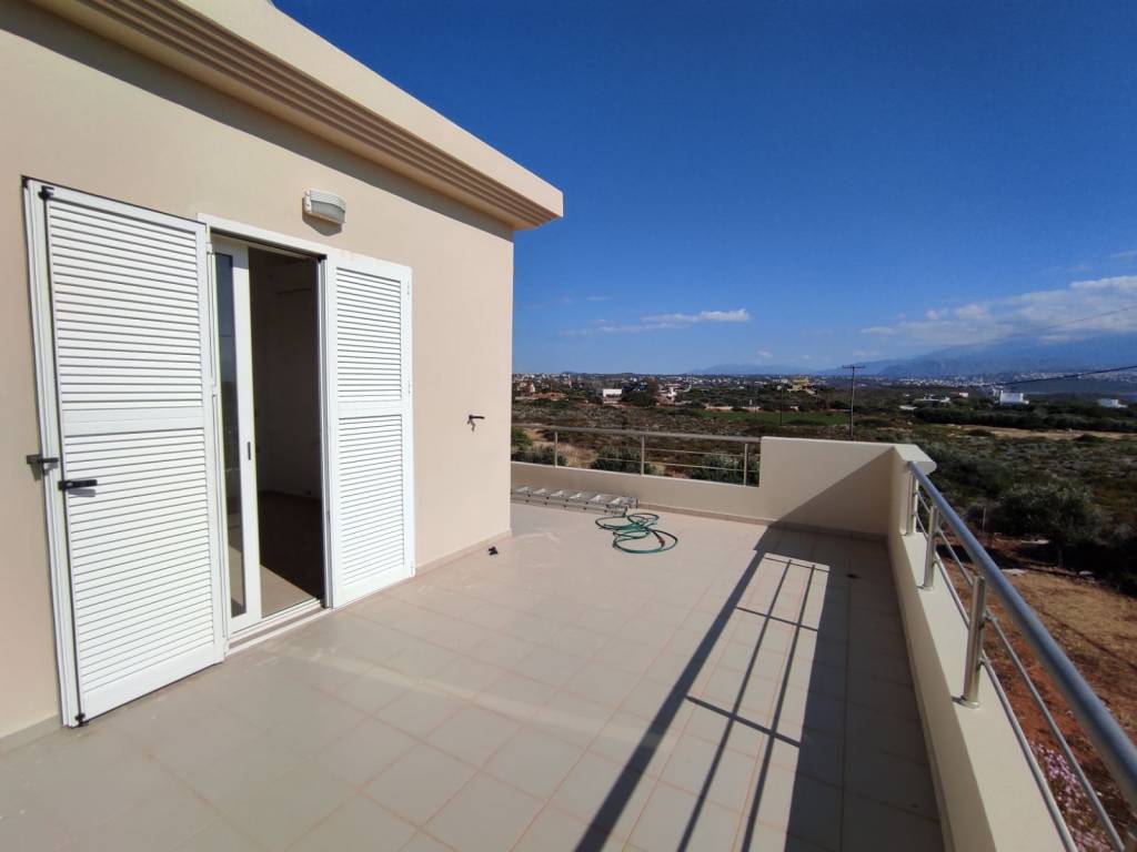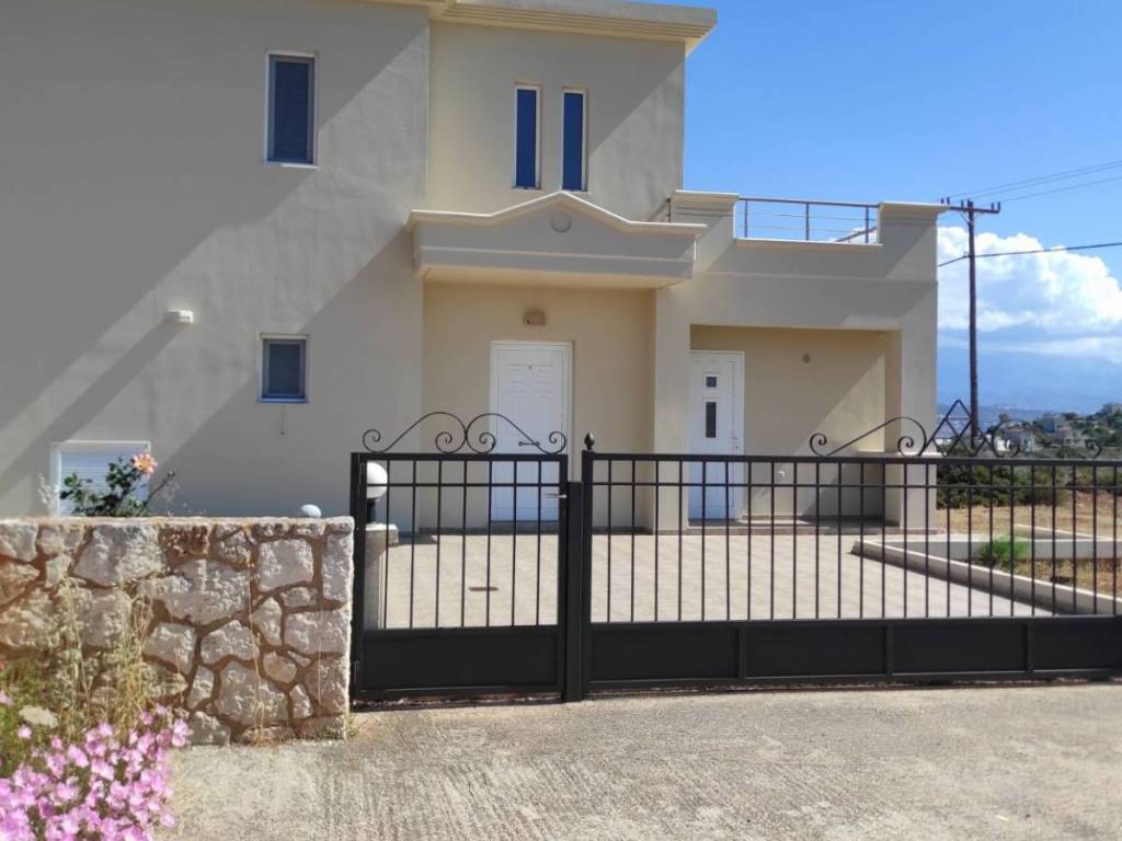For Rent: Two-storey detached house (maisonette) with a clean surface area of 120 sq.m., airy and sunny, located 300 m. away from the sea with unrestricted views. Situated on a fenced plot of 2 acres, offering many outdoor spaces. Consists of a large open-plan living-dining area, kitchen, three bedrooms with spacious closets, one bathroom, and one WC, as well as large verandas with views in all directions. It features aluminum frames with double glazing and screens, central heating with an oil boiler, solar water heater, 2 small storage rooms, 4 A/C units, and outdoor parking. It is offered unfurnished and without electrical appliances. The property is located in Tersanas, Akrotiri, Chania, 7 km away from Chania Airport and 13 km away from the center of Chania city.