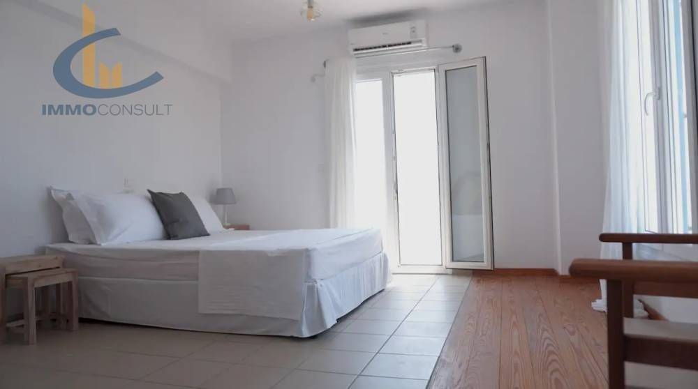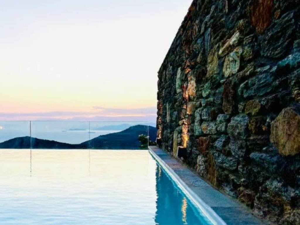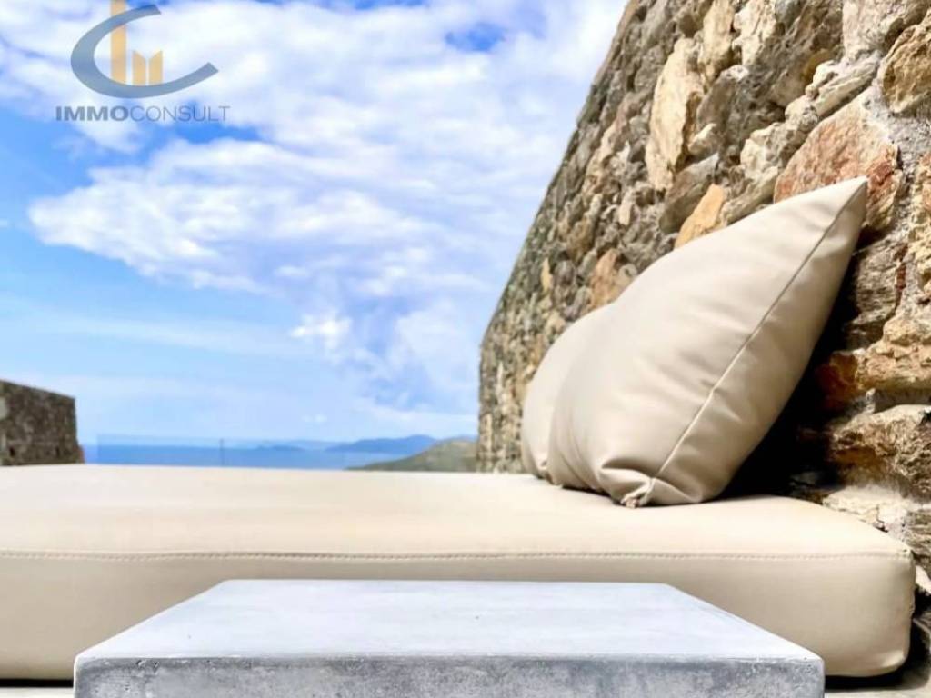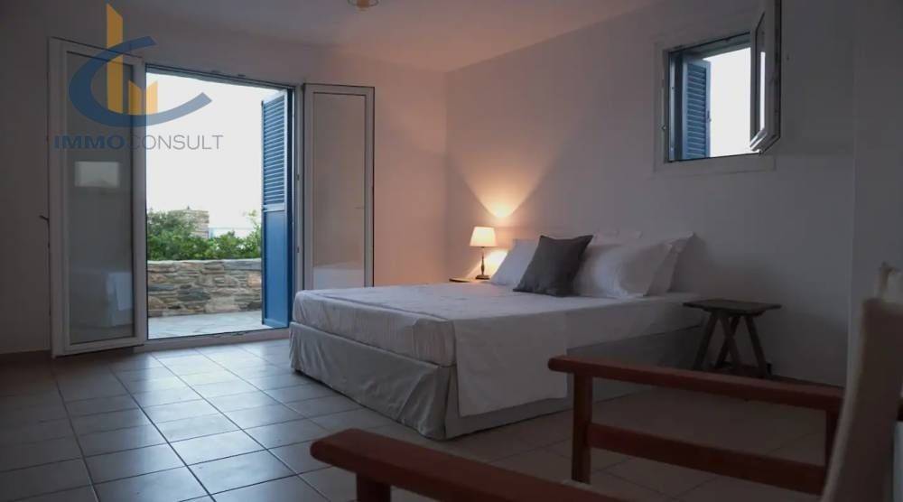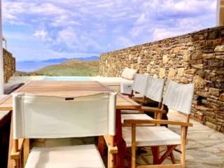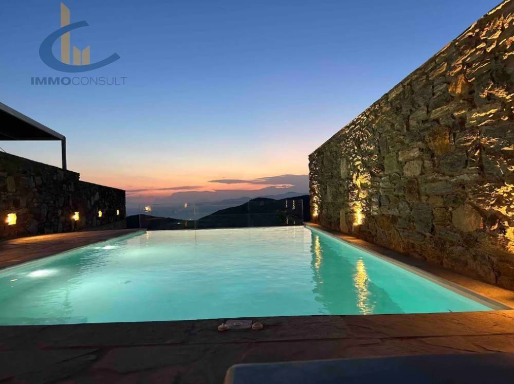 Andros, Gavrio: 5 min. from Fellou Beach by car, with sea view, Detached house for sale, 170 sq.m. with internal staircase. It consists of 4 bedrooms, 1 kitchen, 1 living room and 3 bathrooms. It has a fireplace, an outdoor area where one can see the sunset, a swimming pool/jacuzzi, a barbecue and large private terraces that offer plenty of space for relaxation with a view of the Aegean Sea. It is also suitable for investment. Price €710,000 Property Code: #18761