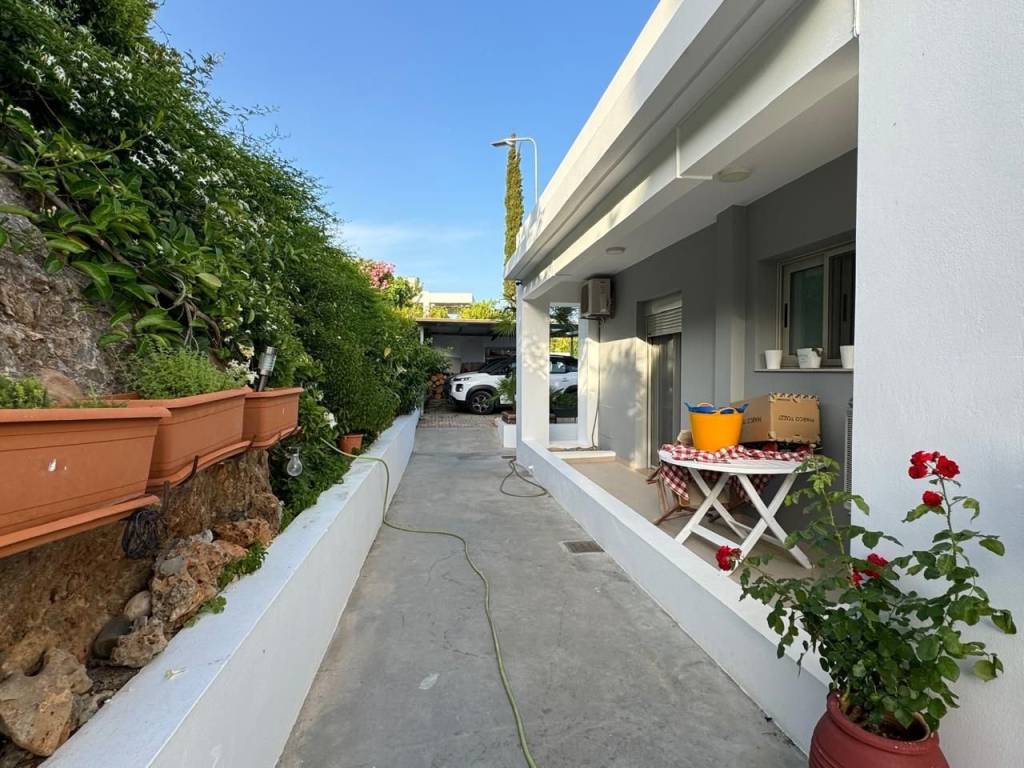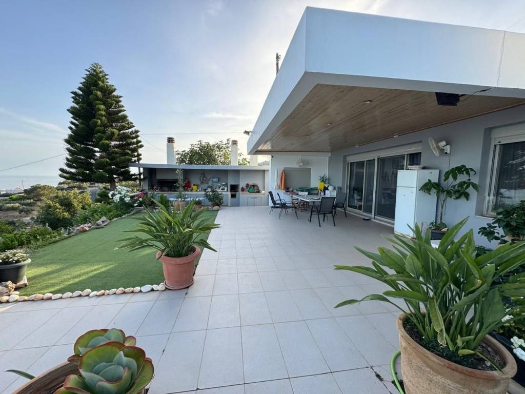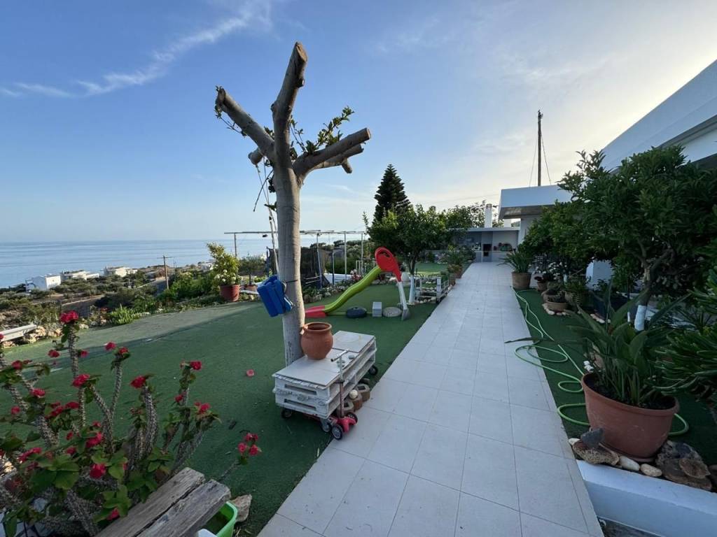 Achlia, Makry Gialos, South East Crete: Fantastic property just 300meters from the sea with stunning sea views. The property consists of two houses right and left and can build another 640m2. The total square meter of the property is 160m2 and it is located on a plot of 2.150m2. It has an open living – kitchen area, three bedrooms, two bathrooms and two store rooms. The property enjoying magnificent mountain and sea views. It has a lovely BBQ area and terraced area. Furthermore, it has solar panel for hot water, A/C and garage. Lastly, the property is located 3km from Makry Gialos resort.