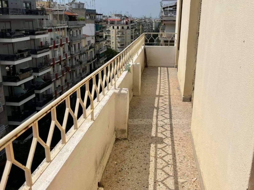 Διαμέρισμα 75τμ στον 6ο όροφο καλοσυντηρημένης πολυκατοικίας. Διαθέτει ασανσέρ. 2 μεγάλα υπνοδωμάτια (με ντουλάπες και το ένα εξ αυτών με διπλό κρεβάτι) Μεγάλο σαλόνι, κουζίνα, μπάνιο. Ανακαινισμένο με ηλεκτρικά στόρια. Φωτεινό με πρόσοψη στον κεντρικό δρόμο. Κεντρική θέρμανση πετρελαίου. Λόγω πολλών διαμερισμάτων αντιστοιχεί μικρό μερίδιο στο κάθε διαμέρισμα. + air conditioner 12 Γωνία Καραολή και Δημητρίου με Ολύμπου.