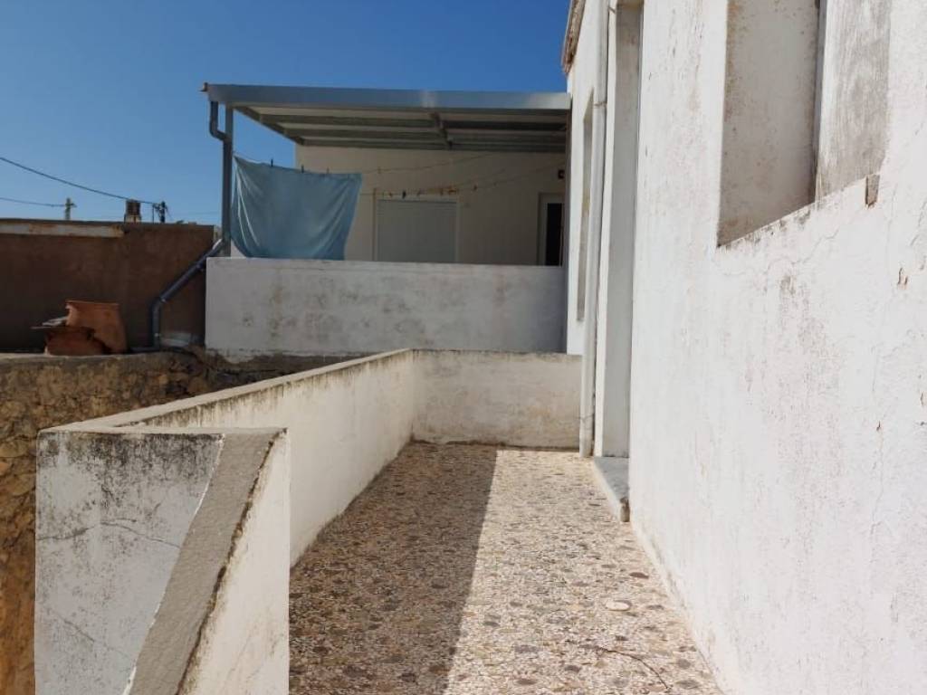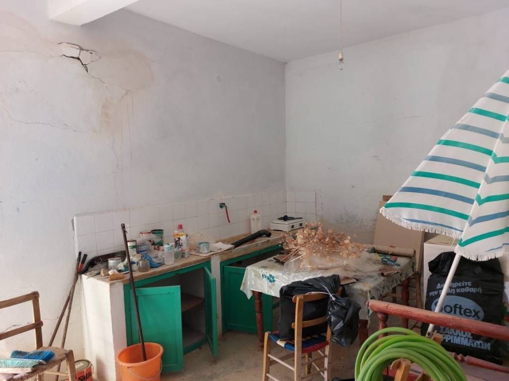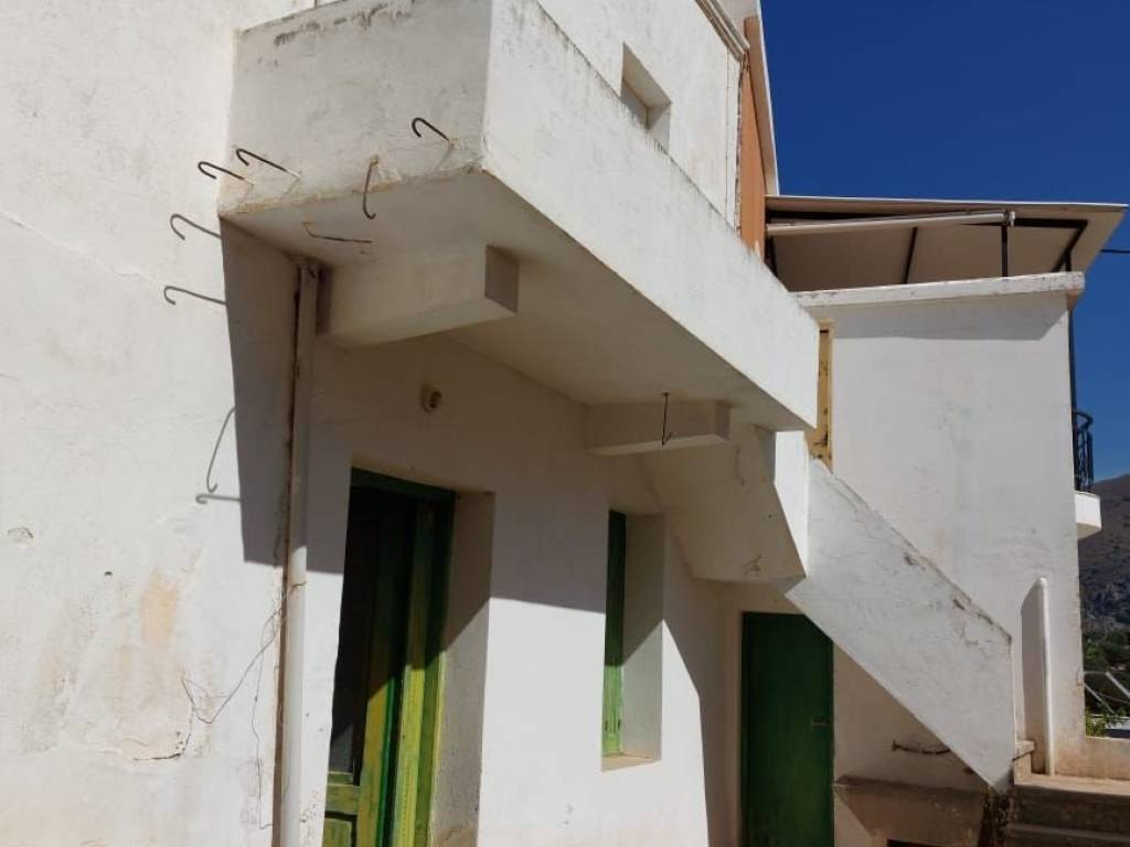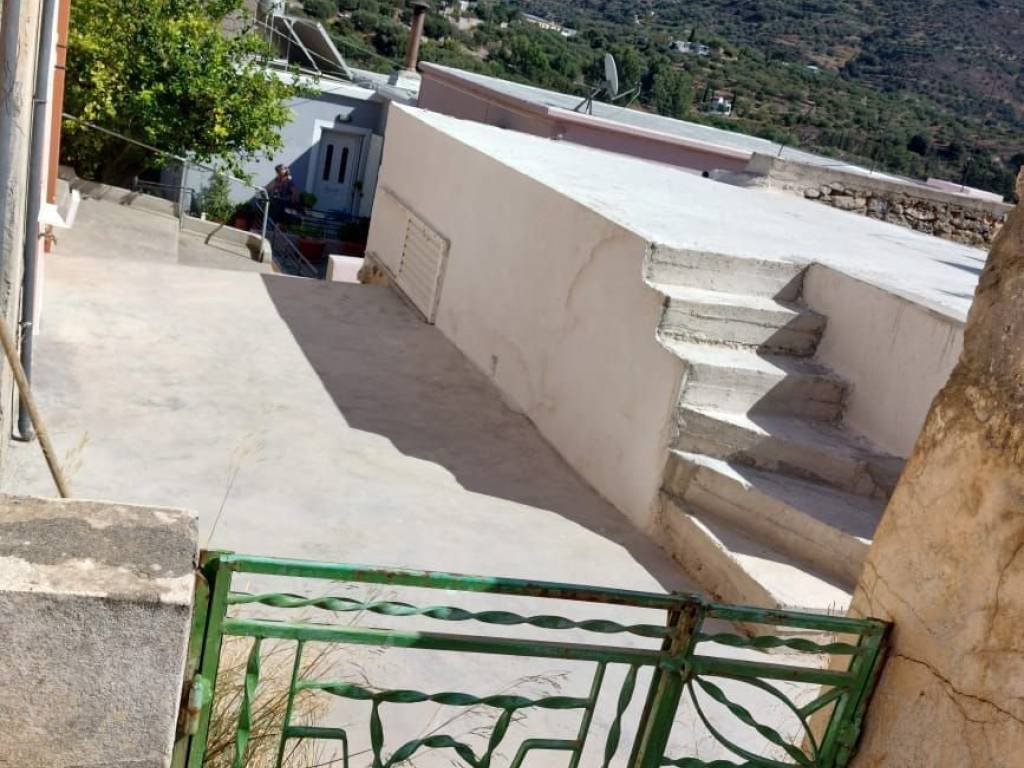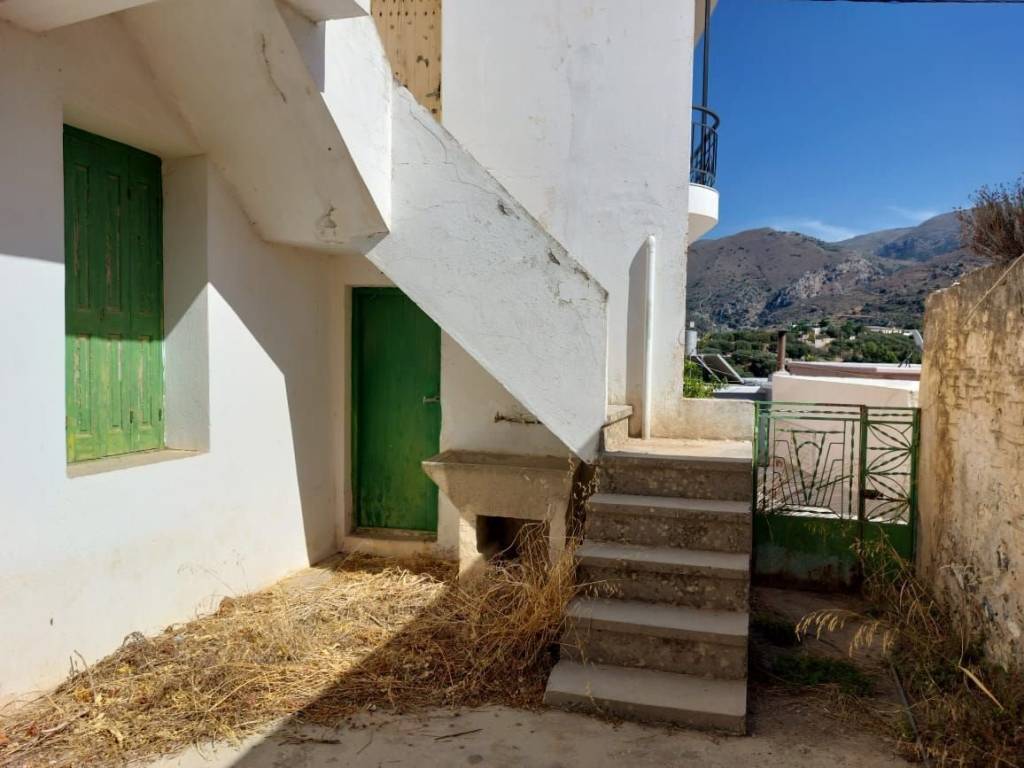Tourloti, Sitia, East Crete: Stone house on two floors with courtyard just 3km from the sea. The house is located on a plot of 128m2. The ground floor is 60m2 consisting of a kitchen, a living area, two bedrooms and a balcony. Outside at the staircase there is a W.C. A concrete staircase leads to the semi-basement which is also 60m2. It consists of a kitchen, two rooms and an outdoor W.C under the staircase. At the courtyard there is also an old bread oven and a storage room with fire place of 16m2 approximately. The property has good access and is in need of modernization. Lastly, it enjoys views to the village and mountains.