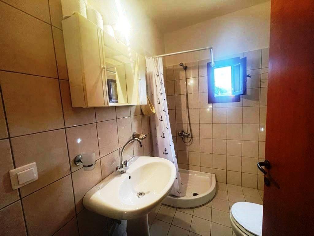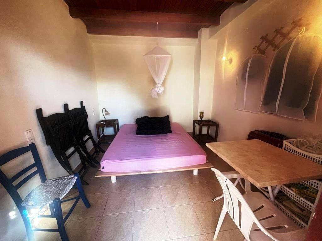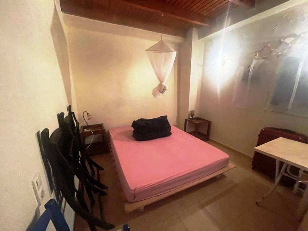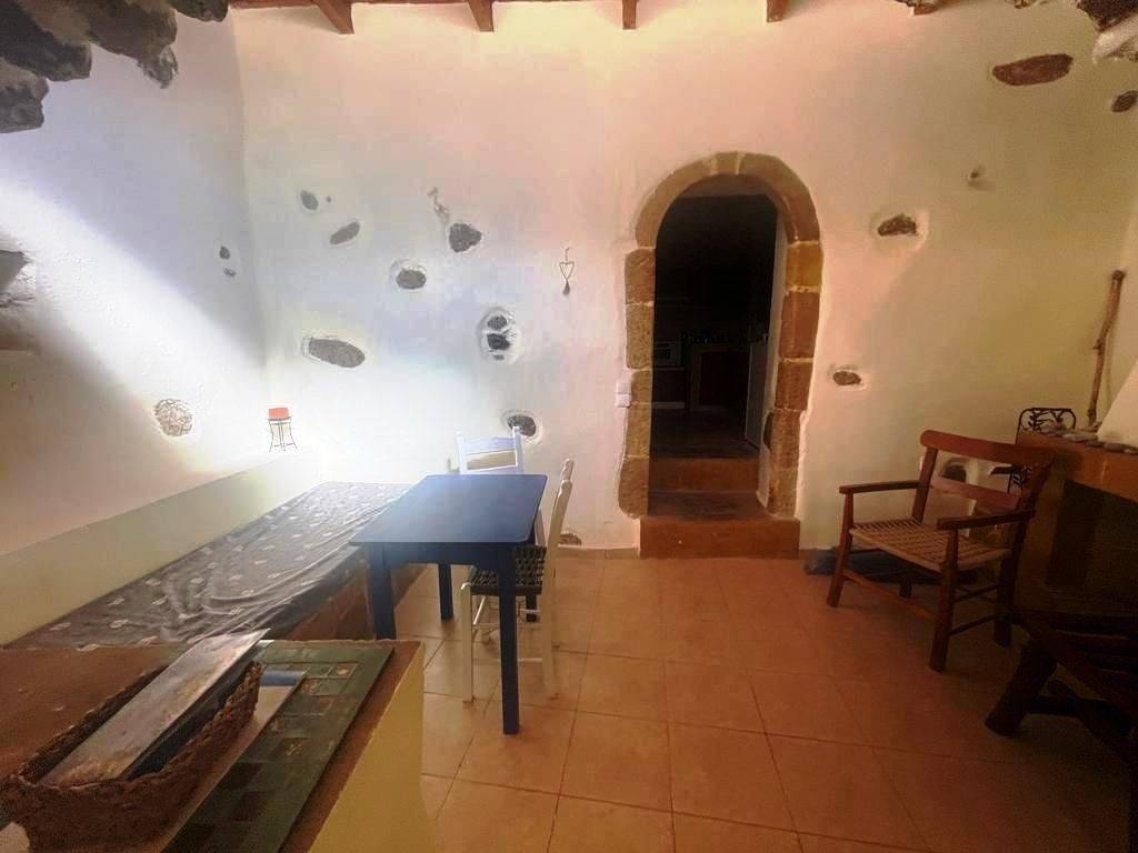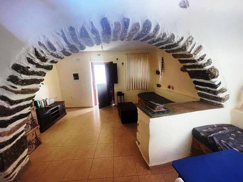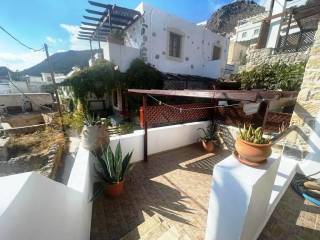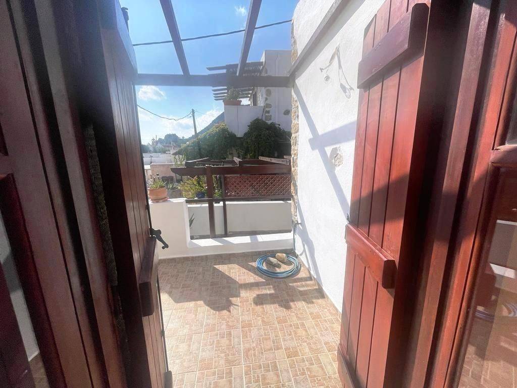 Pefki, Makry Gialos, South East Crete: Lovely traditional house of 96.3m2 for sale in Pefki. The property is on two floors. The ground floor is 48.15m2 and consist of 2 open plan rooms, a kitchen, a utility room with sink, a W.C/store room. The upper floor which is 27.25m2 consists of a bedroom and a bathroom. The property also has seat pads for stone seats, a coffee table, a fire place, a fridge, kitchen cabinets and shelves, a microwave, a bed frame with mattress and a patio table. There are also terraces of 20.9m2. Lastly, the location of the property enjoys beautiful mountain and sea views.