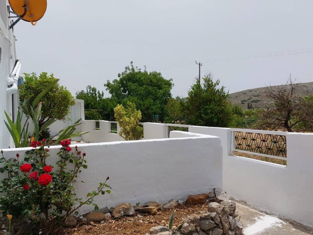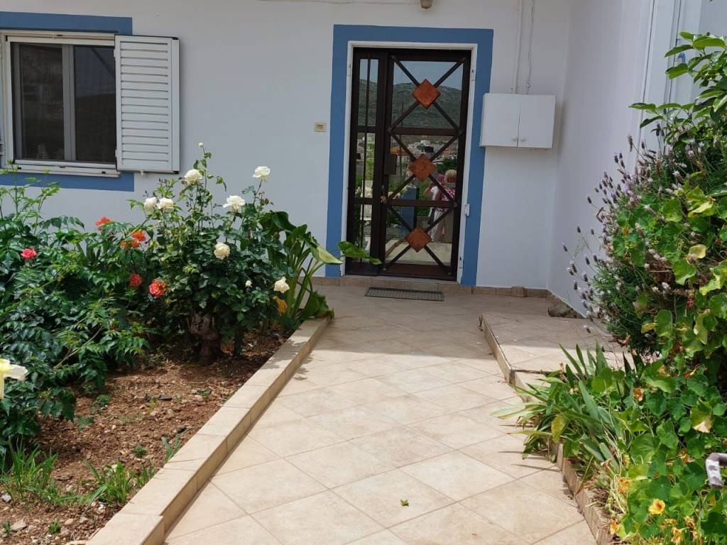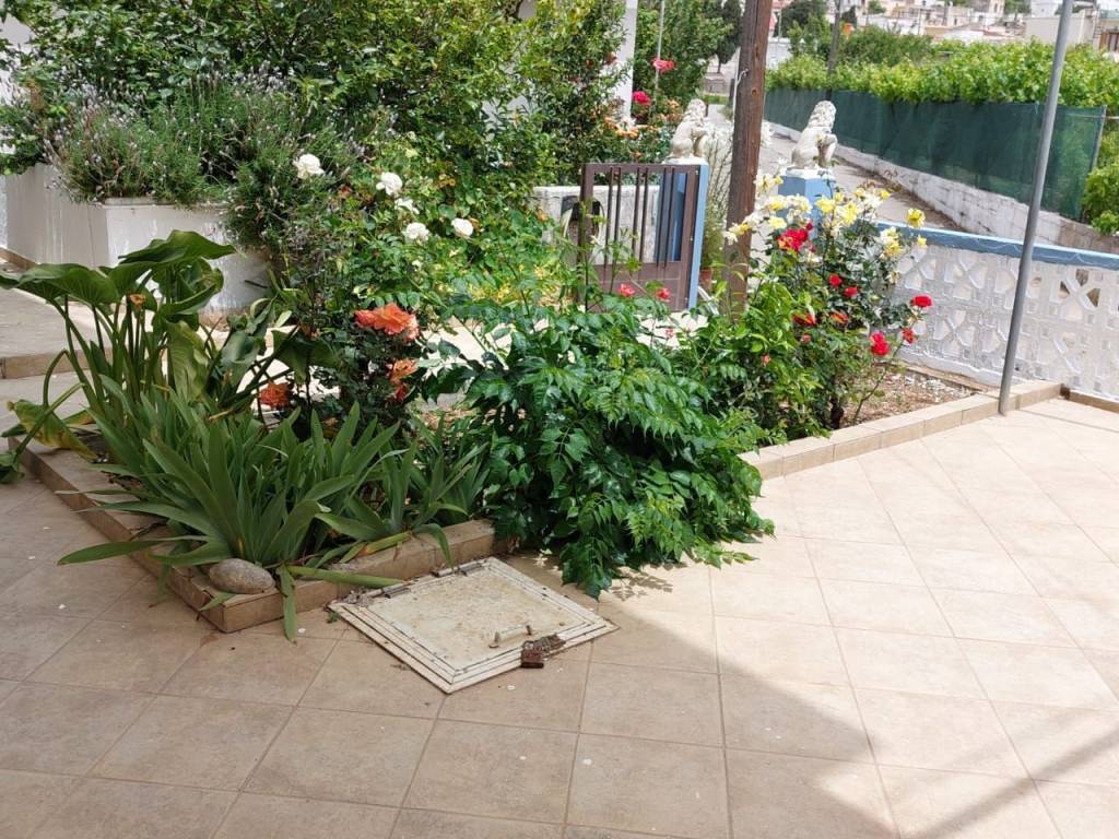 Ziros, Sitia, East Crete: A very large apartment at the edge of the village. It has a courtyard and a garden. The apartment is located on a plot of 350m2. The apartment is 110m2 consisting of a living – sitting area, a kitchen, 3 large bedrooms, a bathroom and a small storage inside. Outdoors, there is a large courtyard with nice flowers at the front and a very nice courtyard at the rear of the house. There is also a garden, a lemon tree and fantastic flowers. The house has 2 storages of 18m2 with a small W.C, plus another small storage where the central heating is. There is very good access to the property and all services are connected. It has central heating and double glazing windows. There is parking at the rear of house. Lastly, the property enjoys village and mountain views and it is located 10km from the sea.