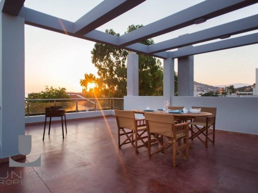 Kalyvia-Lagonisi, Lagonisi Beach, Maisonette For Sale, 325 sq.m., In Plot 420 sq.m., Property Status: Very Good, Floor: Ground floor, 3 Level(s), 5 Bedrooms (1 Master), 1 Kitchen(s), 3 Bathroom(s), 1 WC, Heating: Autonomous - Petrol, View: Sea view, Building Year: 2007, Energy Certificate: C, 1 parking(s), Floor type: Wooden floors, Features: Elevator, CCTV, Storage room, Fireplace, Playroom, Internal Staircase, Triple Glazed Windows, Balconies, BBQ, Airy, AirConditioning, Solar water system, Back yard (Garden), Price: 1.100.000€ - The location of the property on the map is indicative. - UNION PROPERTIES 2108970044 - 6949613181, https://www.union-properties.gr/, email: south@union-properties.gr