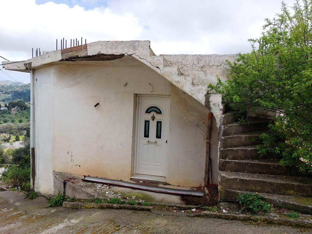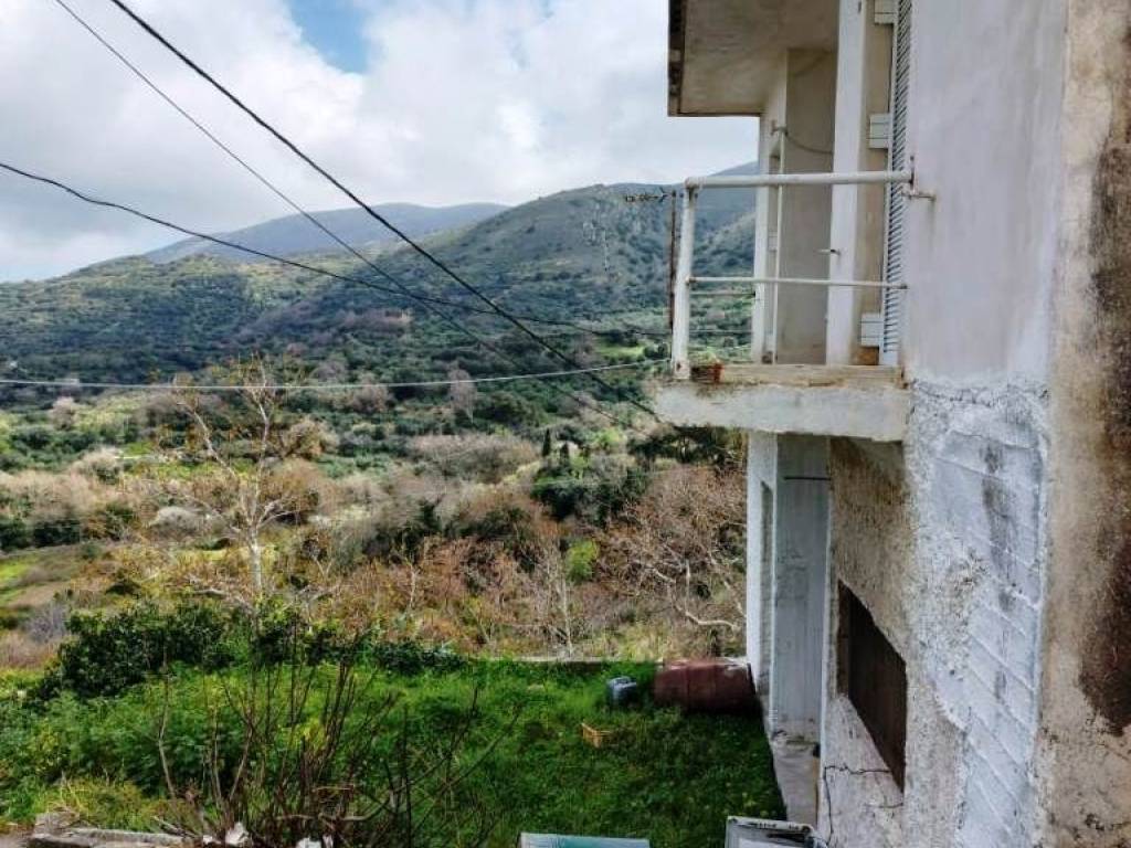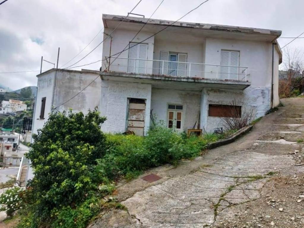 Mesa Mouliana, Sitia, East Crete: Nice village house on two floors with roof terrace. The house is located on a plot of 133m2. The ground floor is 80m2 consisting of an open plan area and a courtyard at the front. The first floor is also 80m2 and consists of an open plan living area with kitchen, two bedrooms, a bathroom a corridor and balconies enjoying views to the mountains. An outdoor concrete staircase leads to the roof terrace which enjoys view to the mountains, and a little to the sea. Lastly, the house is in need of a little finishing and has good access.