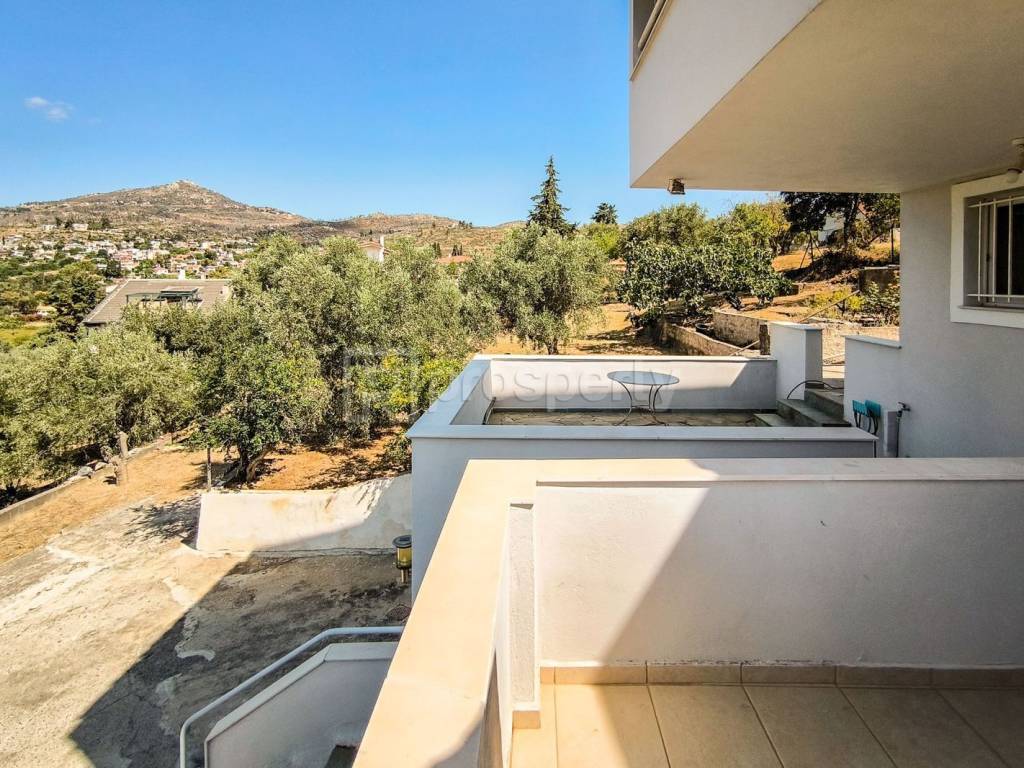 The two-story detached house is located at the Kapandriti Junction on a hill, offering panoramic views, making it suitable for either a permanent residence or a vacation home. It has a total area of 174 square meters and sits on a 5,500 square meter plot with olive trees and a 31-meter frontage. Originally constructed in 1978, the property saw the addition of a garage, kitchen, one bedroom, and an elevator in 1995. The reception area with a fireplace and dining room is very bright. The windows are double-glazed with hinged shutters, the heating is central with oil, and the property is equipped with an alarm system and a security door. The orientation is east-southeast. https://marketplace.theprosperty.com/listings/8774 ☎️ 210 6812500.