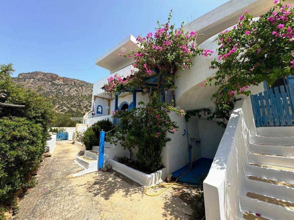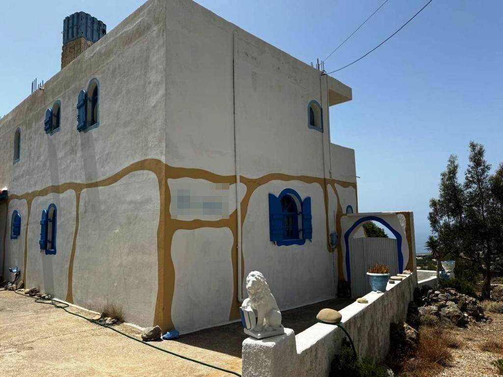 Koutsounari, Ierapetra, East Crete: House on two levels enjoying lovely sea views in Koutsounari. The property is 200m2 located on a plot of 2.100m2. It consists of 3 bedrooms, 2 bathroom and an open plan living kitchen area. The property has solar panel for hot water and A/C. Outdoors, there is a parking area, a garden and balcony. Lastly, the house is located 2km from the sea and 10km from Ierapetra town.