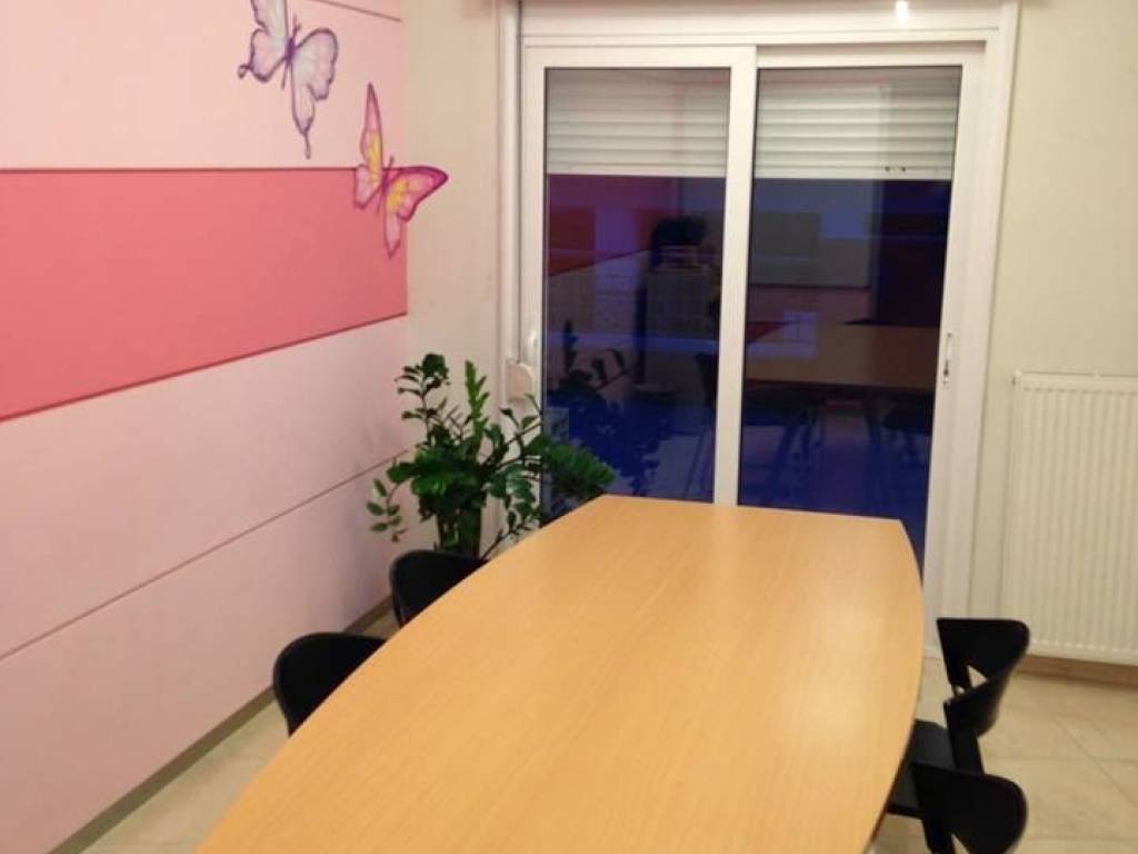 χώρος κατάλληλος για κάθε επαγγελματική χρήση, με πλήρη εξοπλισμό φροντιστηρίου(παρακάτω αναλυτική περιγραφή),στο κέντρο της πόλης, με ξεχωριστή είσοδο ,υπόγεια θέση στάθμευσης, μεγάλη βεράντα, ασανσέρ(πολυκατοικίας) με μεγάλο άνοιγμα για αμαξίδια ΑΜΕΑ, ράμπα εισόδου, ειδική τουαλέτα ΑΜΕΑ, εγκατάσταση συναγερμού, ενδοδαπέδια εγκατάσταση internet σε όλους τους χώρους, ενδοδαπέδια ηχομόνωση ,εγκατάσταση γραμματειακής υποστήριξης,, κάμερες παντού ,έξι τουαλέτες, δύο δορυφορικές κεραίες κλπ. ΕΞΟΠΛΙΣΜΟΣ Ολλανδικά πτυσσόμενα διαχωριστικά panel SONICO120 της εταιρείας ESPERO υψίστης ηχομόνωσης και πυράντοχα. Ιταλικά φωτιστικά σε όλους τους χώρους. Επαγγελματικά έπιπλα, γραφεία ,σαλόνια, βιβλιοθήκες τραπέζια κλπ Διευθυντικό γραφείο με συρταριέρα ειδική παραγγελία. Επιπλο γραμματείας ειδική παραγγελία ανατομικά καθίσματα μεγάλο εκτυπωτικό Konika εκτυπωτή LASER 4 διαδραστικοί πίνακες 4 διαδραστικοί προτζέκτορες καταγραφικό καμερών με μνήμη Κλιματιστικά mitsubishi σε όλους τους χώρους μεταλλικές περσίδες στα παράθυρα.