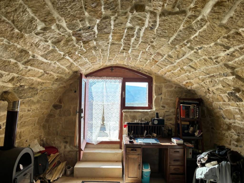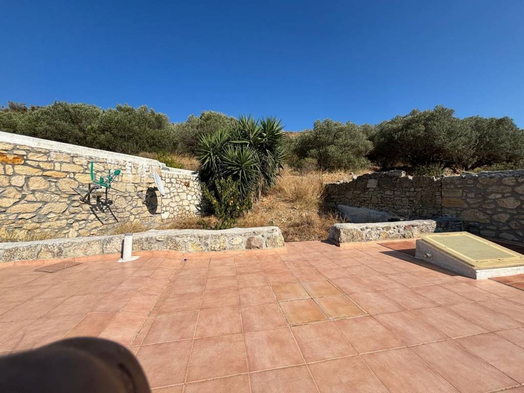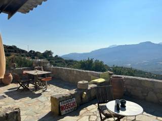 Papagiannades, Sitia, East Crete: Very traditional stone house with a large garden of olive trees. The property is 12km fr?m the sea and Makry Gialos resort. A nice traditional ground floor house of approximately 135m2 located on a plot of 770m2 part with olive trees. It consists of a living area with a doorway leading to the large terrace which has pergola and fantastic views all around the mountains. Furthermore there is a kitchen, a bedroom, a bathroom/shower as well as a corridor leading to the front yard. There is a separate entrance to a studio which has a nice traditional archway ceiling. Outdoors, a stone staircase leads to the roof terrace where one can enjoys fantastic mountain views all around. The property is sold fully furnished. It has good access with a small part accessed by a pathway. Lastly, all services are connected.