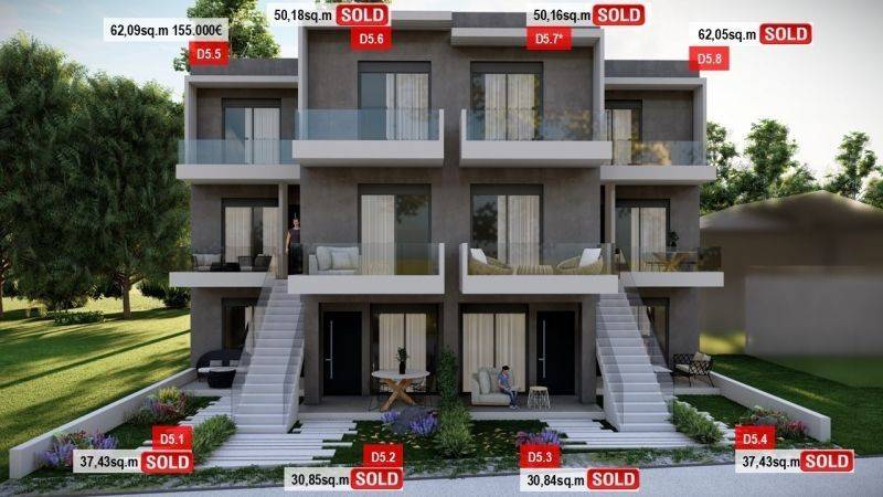 • 8 Διαμερίσματα ορόφου με σοφίτα από 50,14τ.μ. έως 62,07τ.μ, που αποτελούνται από σαλοκουζίνα, 2 υπνοδωμάτια και 2 μπάνια.
