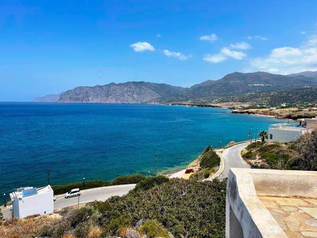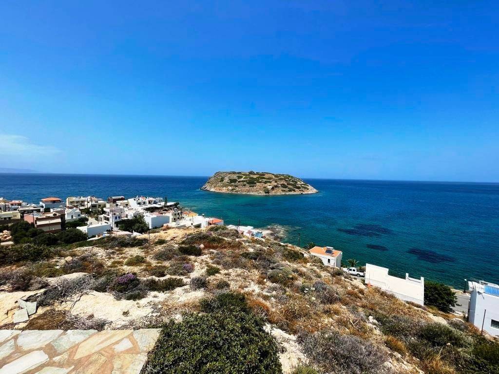 Mochlos, Sitia, East Crete: Plot with sea views and a house 80meters from the sea. The plot is 2120m2 located on the top of Mochlos village with the possibility to be divided into two plots of 1000m2 each. If divided, each plot can build 400m2 so both together a total of 800m2. There is a house as well of 73m2 with kitchen-living area and fire place, two bedrooms and a bathroom. It has a storage of 32m2 as well with separate entrance. The property has good access and enjoys views to the sea of Mochlos, the village and the mountains.