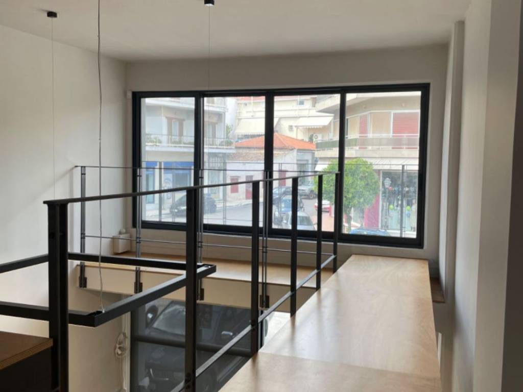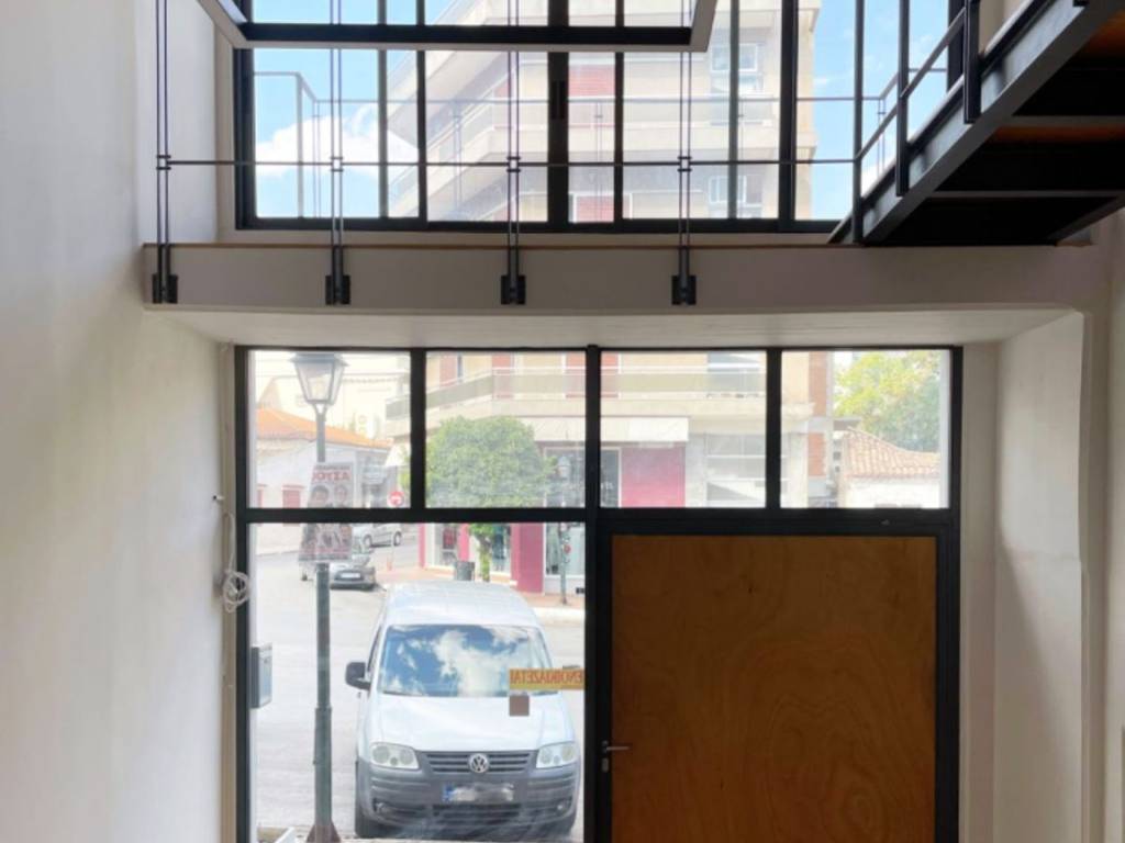 Επαγγελματικός χώρος 75 τ.μ. σε ανοιχτό χώρο στο ισόγειο και στον ημιώροφο, με θέα στην πλατεία Δημοσθένους. Ο χώρος βρίσκεται στην πλατεία Δημοσθένους, Παιανία, Αττική, κοντά στο Ελ. Βενιζέλος. Έχει άπλετο φως από τα υαλότουβλα στη νότια πλευρά. Βρίσκεται στο ισόγειο και στον ημιώροφο ενός κτιρίου μικτής χρήσης, έχει ιδιωτική είσοδο και ανοιχτό, μίνιμαλ σχεδιασμό που δημιουργήθηκε από αρχιτέκτονα. Το ισόγειο διαθέτει εσωτερικό αίθριο με μεγάλο μπροστινό παράθυρο. Το ανώτερο επίπεδο διαθέτει έναν χώρο εργασίας και μια κουζίνα. Η κυκλική σκάλα οδηγεί στον επάνω όροφο, όπου βρίσκεται ένας επιπλέον χώρος εργασίας καθώς και ένα W.C. Στη μέση του αίθριου, υπάρχει μια γέφυρα που οδηγεί στο εσωτερικό μπαλκόνι. Ο χώρος διαθέτει κλιματισμό και επαγγελματική καλωδίωση. Δεν υπάρχουν κοινόχρηστα τέλη και είναι άμεσα διαθέσιμο και έτοιμο προς χρήση.