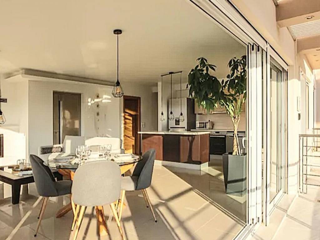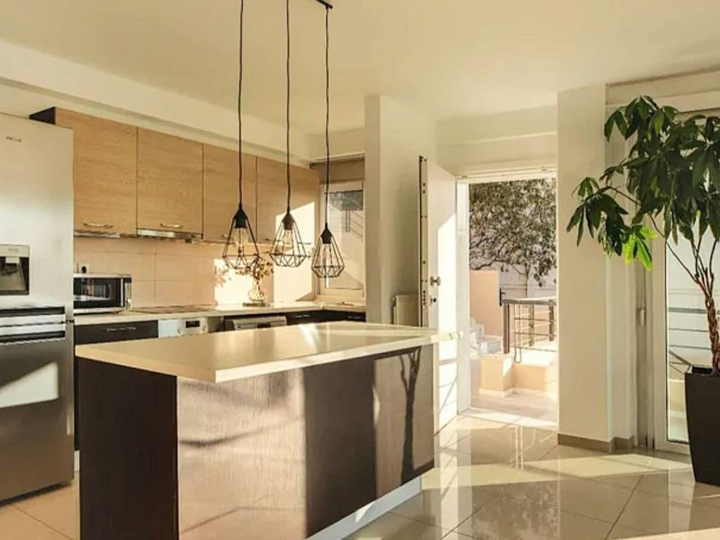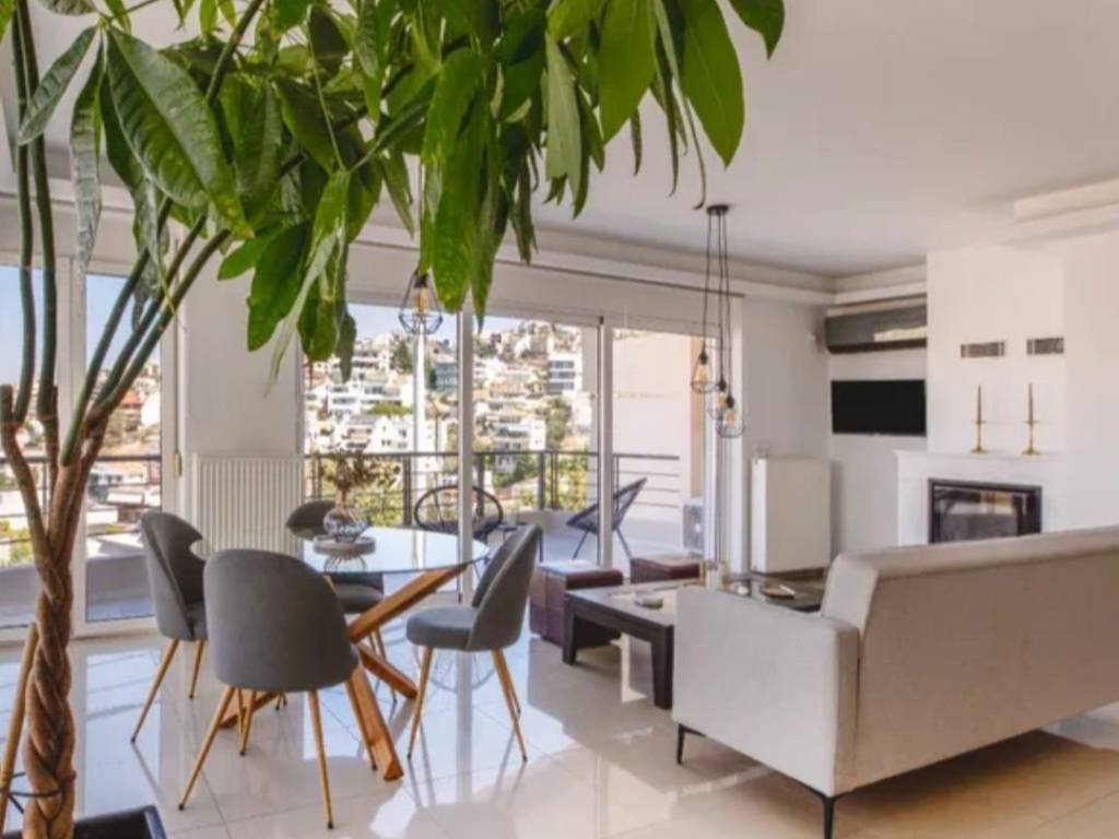 Εξαιρετικό διαμέρισμα πολυτελώς επιπλωμένο και εξοπλισμένο, 2 υ/δ, το ένα master με εσωτερικό βεστιάριο, ευρύχωρο σαλόνι με κουζίνα (ψυγείο, φούρνος, εστίες, πλυντήριο ρούχων κ πιάτων, στεγνωτήριο) ενεργειακό τζάκι, τηλεοράσεις smart, γυμναστήριο, Χωρίς κοινόχρηστα, θέα ανοιχτός ορίζοντας και λόφος Πανοράματος. Διαθέσιμο από 11/2025
