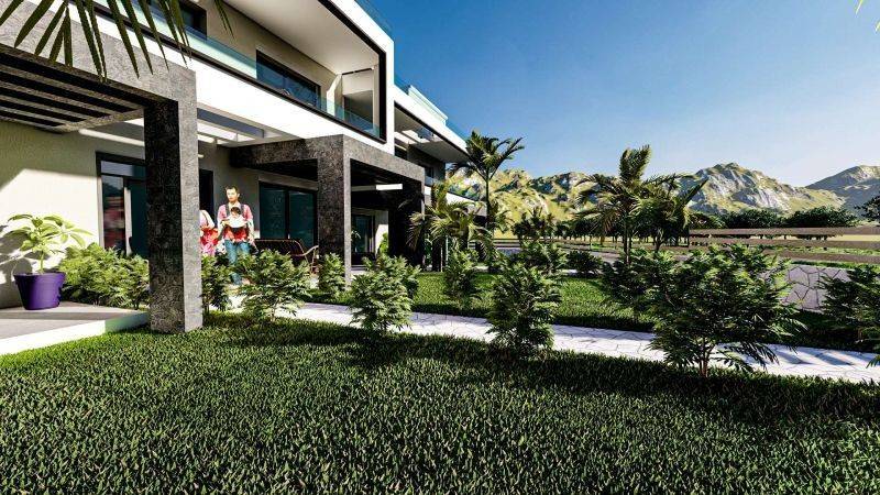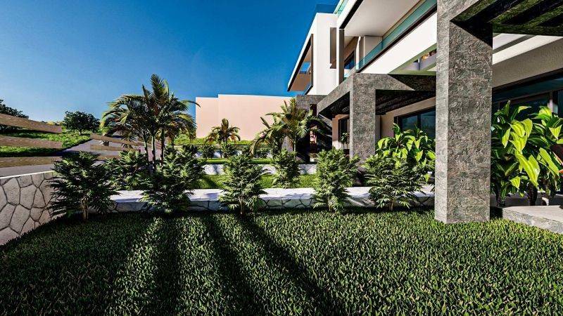 Εξωτερικά, ο οικισμός είναι εναρμονισμένος με το φυσικό τοπίο της περιοχής, καθώς περιβάλλεται από τροπικά φυτά και πράσινους κήπους που αποπνέουν αίσθηση ηρεμίας και χαλάρωσης. Τα υλικά που έχουν χρησιμοποιηθεί, ενισχύουν αυτή τη σύνδεση με τη φύση, προσφέροντας ταυτόχρονα ένα σύγχρονο αισθητικό αποτέλεσμα.