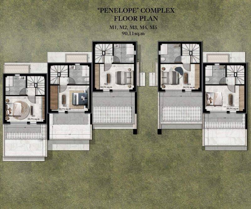 • 5 Three-story houses 90,11sq.m. consisting of a living room with kitchen, 2 bedrooms, 3 bathrooms.