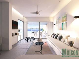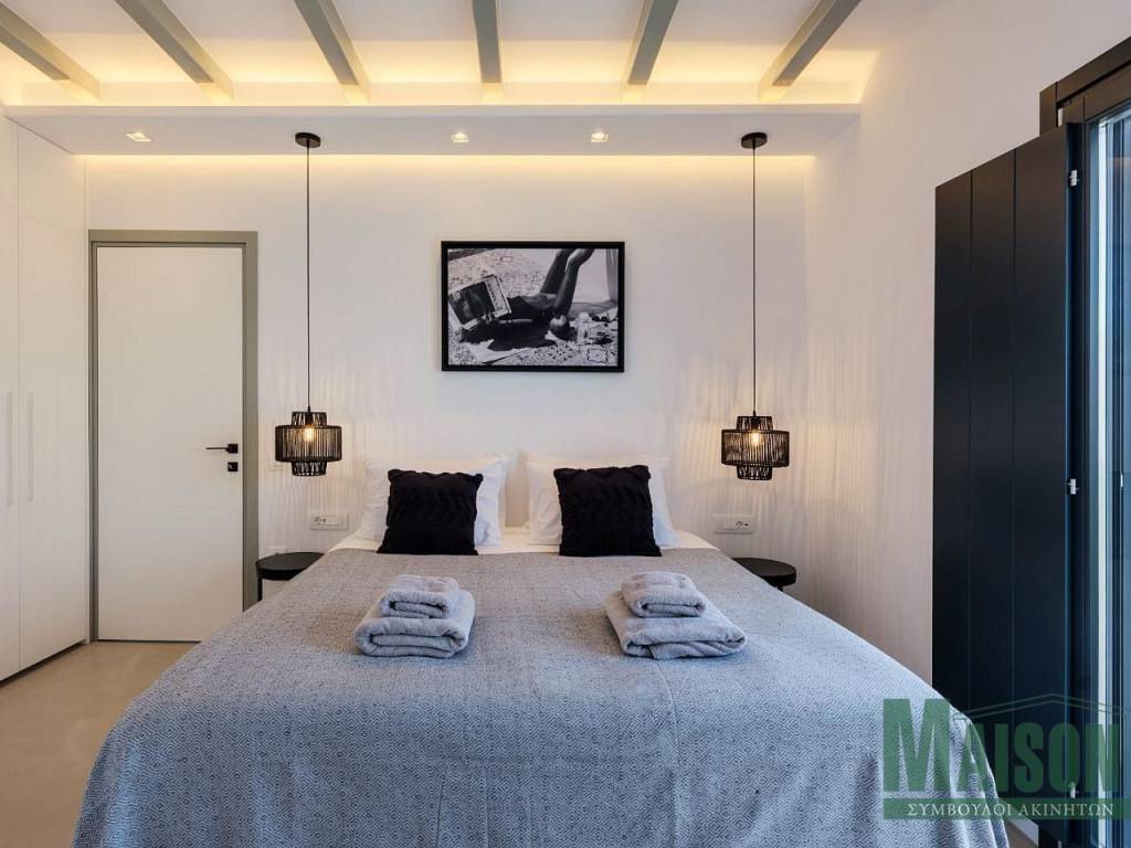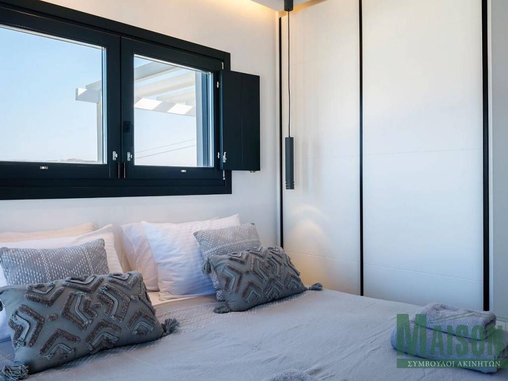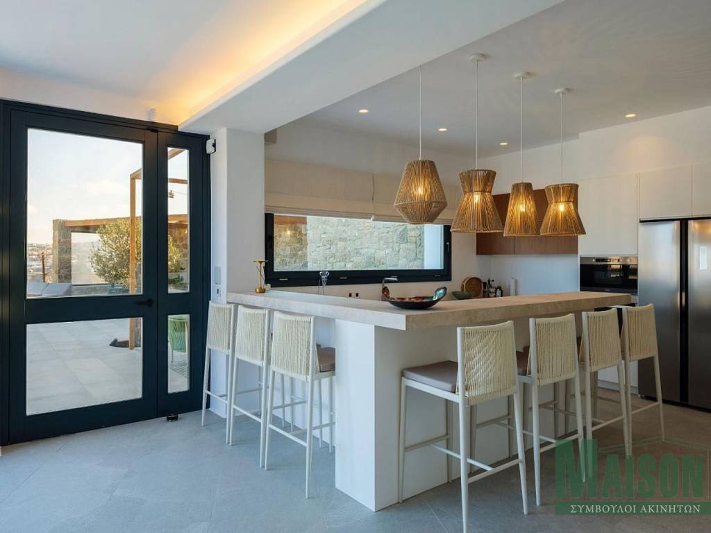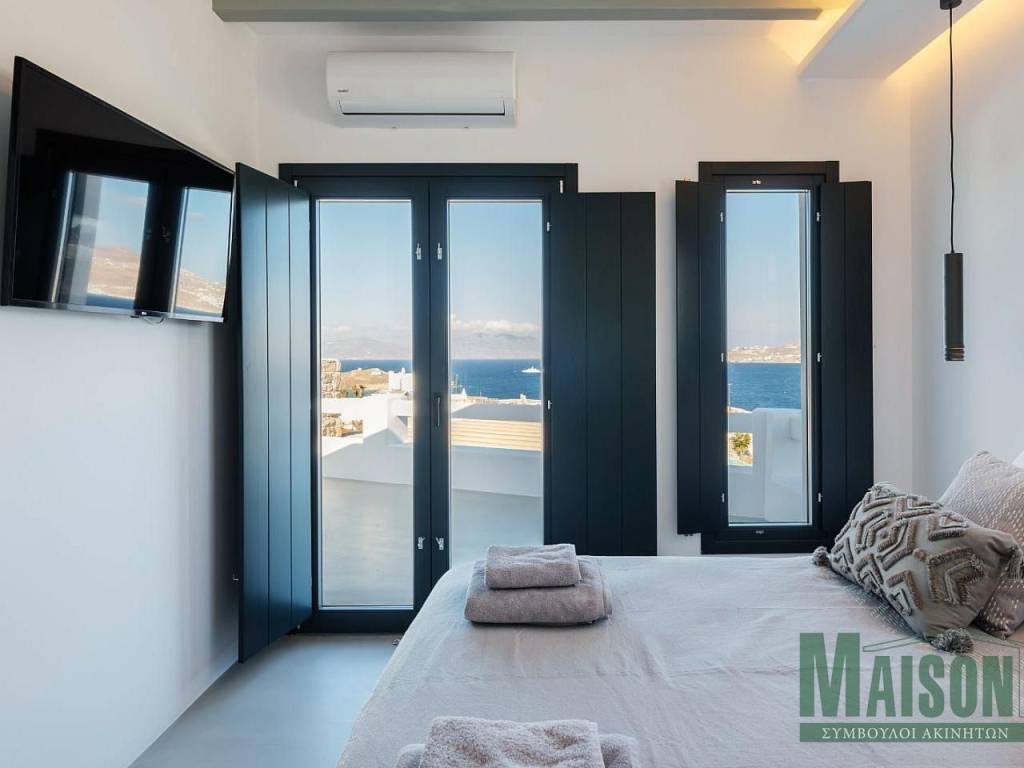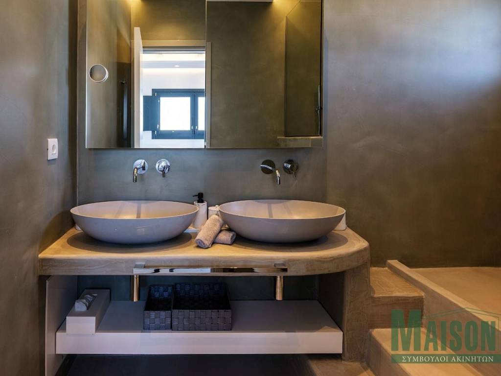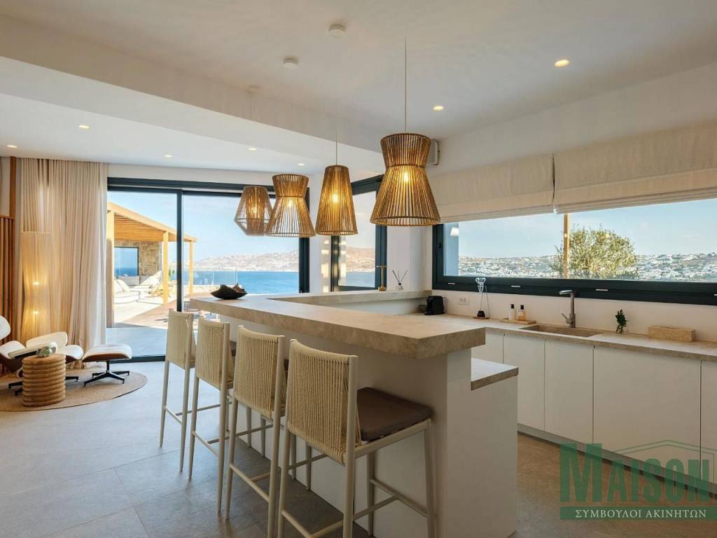 Mykonos, Villa, 215sq.m, on a plot of 900 sq.m, under construction with expected delivery dare late summer / fall 2023, ground floor: 2 master bedrooms with large ensuite bathrooms, kitchen, dinning room, living room, wc, storage room, stairway, verandas, hallway, Upper level: 4 master bedrooms with large ensuite bathrooms, stairway,, hallway, verandas, Outdoor: infinity swimming pool, jacuzzi, pergolas, outdoor lounge, pool deck lounge & barbecue , spectacular views of Mykonos Town, port of Myconos & Tinos island, property ID: 17014, www.maison-estate.gr