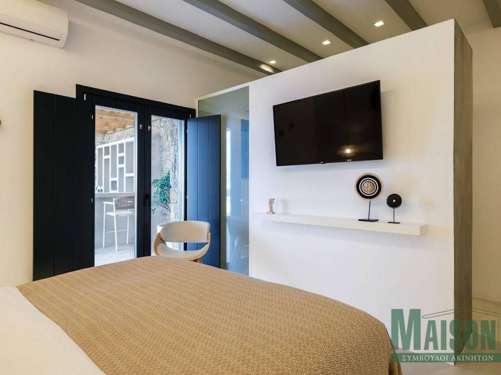 Property Code: 17014 - FOR SALE in Mykonos Main town - Chora 1.950.000 € . This 215.00 sq. m. is on the Ground floor and features 6 Bedrooms, Bathroom and a WCThe property also boasts unobstructed view, garden, jacuzzi, swimming pool, double-glazed windows, solar-powered water heater, BBQ. The construction begun in 2023 Plot area: 900 s.q. . Building Energy Rating: