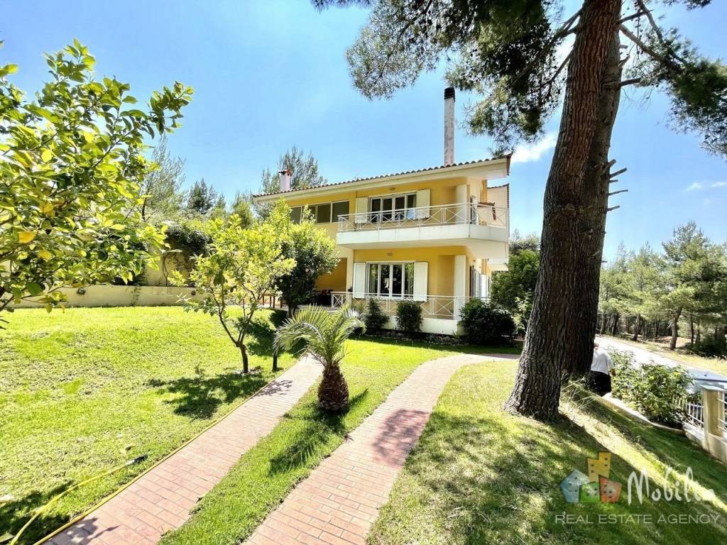 Beautiful family house of 330 sqm on 4 levels, in perfect condition, built on a plot of 508 sqm; it is the ideal option for a family who wishes to live in contact with nature. Indeed it is located on the edge of a pine forest, near international schools and major highways. It is located in absolute calm, 2.5 km from the shops of Pikermi, 10 minutes from the Macarthur shopping center and the Attica motorway, 20 minutes from the airport and 15 minutes from the beaches. You will appreciate its lawned garden, its paved courtyard equipped with a BBQ, its spacious and bright rooms, its numerous storage spaces and its view of the pine forest. The slightly sloping ground allows two levels of ground floor. The entrance to the house through the garden leads us to a large living room with fireplace, decorated with balconies, the open kitchen is equipped,and communicates with the BBQ area, a toilet and a storage room. On the first floor a living room serves 3 comfortable bedrooms including a master with walking closet and its ensuite bathroom, two children's bedrooms with mezzanines, there is also a second spacious bathroom. On the top floor, a large attic room can be used to install an office, play room, gym room or extra bedrooms. At the lowest level next to the garage, there is a large living room with an open kitchen and its fireplace, a bedroom and a shower room. Independent heating on each floor, boiler, double glazing, security door, automatic watering.