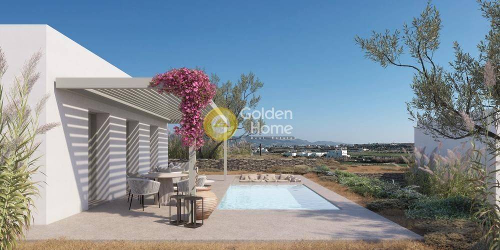 Paros, Glysidia: This detached house, currently under construction, boasts a 131sqm living space and an accompanying 18sqm pool, set on a 494sqm plot. Its advantageous location offers easy access, stunning sea views, and a tranquil environment surrounded by luxurious residences. The project is underway and is anticipated to be finished within 20 months. Prospective buyers have the option to customize the ground floor, which spans 97.72sqm, featuring a living room, dining area, kitchen, two master bedrooms, one additional bedroom, and a WC. Additional amenities include the 18sqm swimming pool and two designated parking spaces. An engine station covering 8.55 sq.m is also part of the package. The total plot size is 494 sq.m. With its blend of modern living spaces, scenic surroundings, and potential for personalization, this property presents an enticing opportunity for those seeking a comfortable and stylish residence in Paros' sought-after Glysidia area.