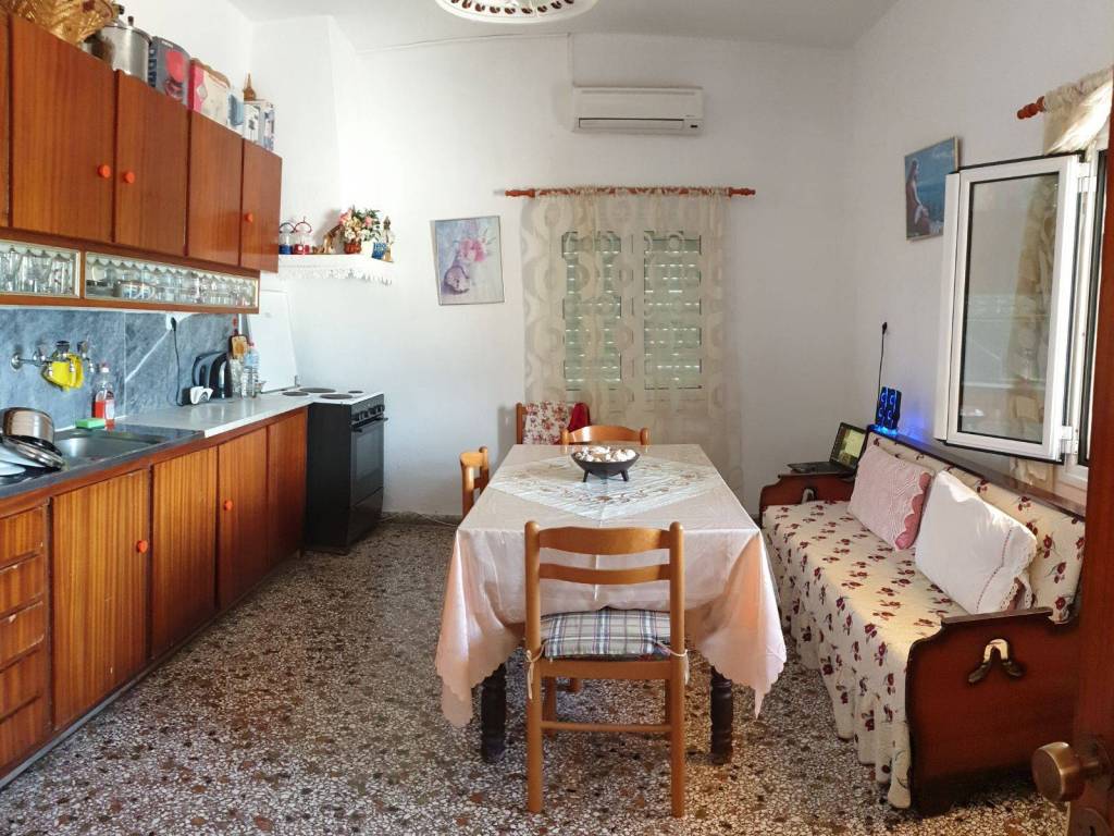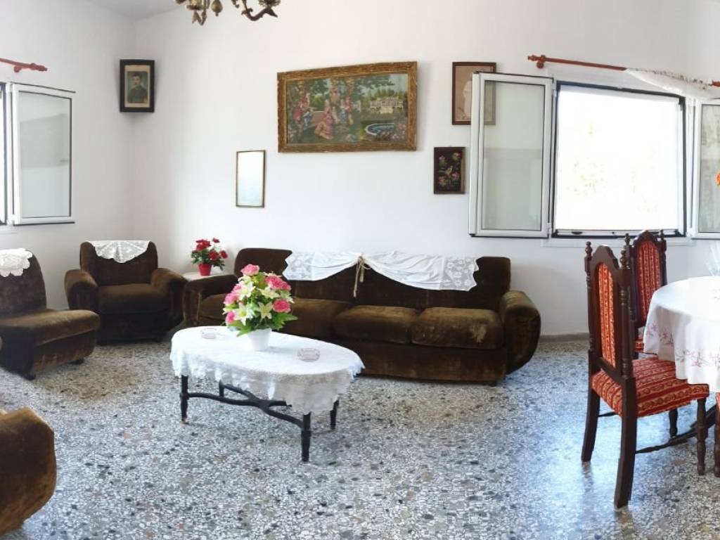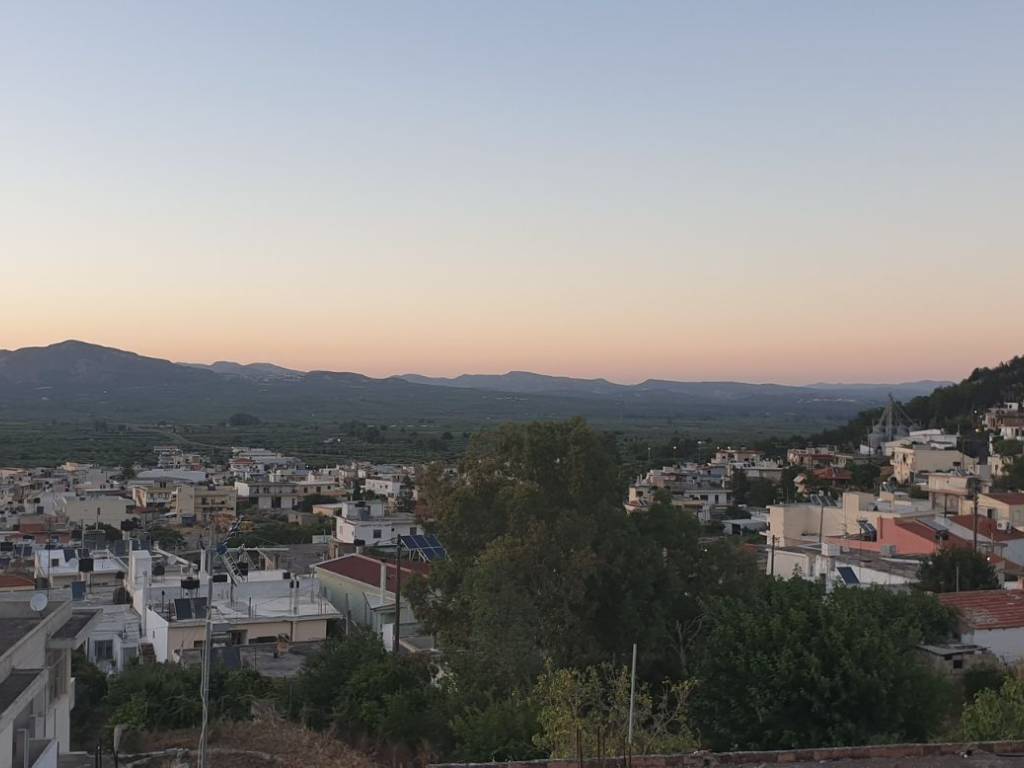 PYRGOS Detached house 100 sq.m. with garage/storage 100 sq.m. Kitchen, living room, 2 bedrooms, bathroom. Airy, with a large back yard and a large front porch with unlimited views to Messara plain. The kitchen and living room are at the front (view of the plain), while the bedrooms face the back yard. Quiet, sunny, spacious, with alarm and cameras.
