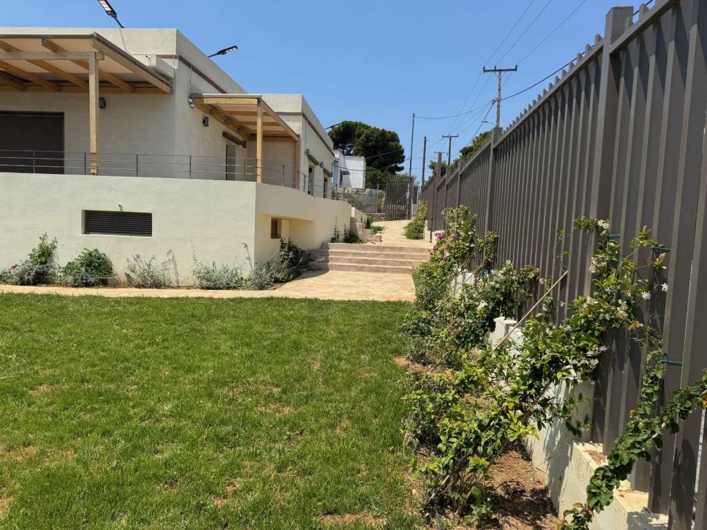 detached house 50 meters from the sea. sea view large garden with trees, bougainville and lawn complete reconstruction 2023. 1. thermal enclosure 2. thermal insulation and waterproofing of roof 3. thermal interupting aluminum frames with insects screens and blinds 4. tiles on the verandas & stone floors in the surrounding area 5. tiles on the interior and wooden floors in the bedrooms 6. solar water heater 7. air conditioning everywhere 8. electric ceramic hobs 9. electric oven 10. air extractor 11. refrigerator/freezer 12. heating installation - single pipe- panels- boiler kitrunami- diesel oil tank 13. data networks 14. perimetric cameras 15. burglar alarm 16. external lighting & solar lights 17. wooden pergolas & automatic electric awnings 18. storage space 59sqm 19. 2-3 parking spaces