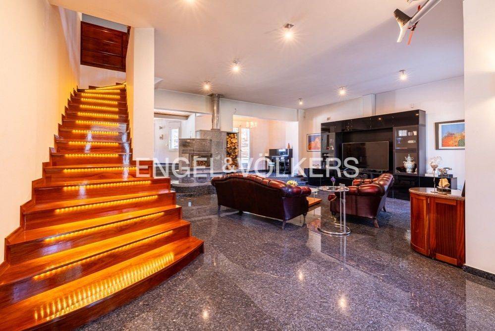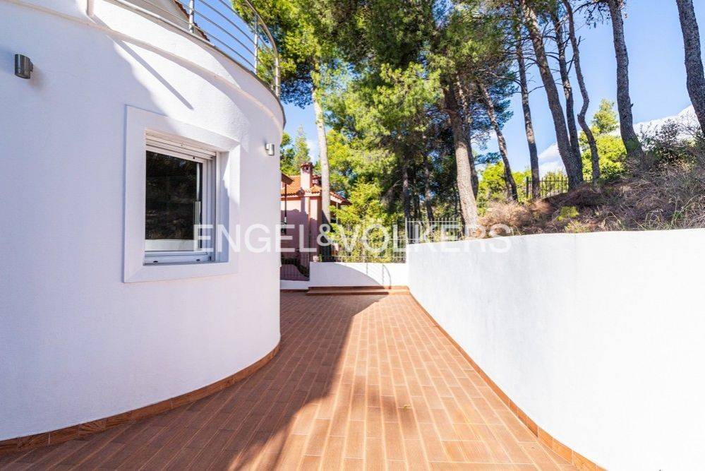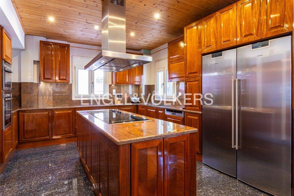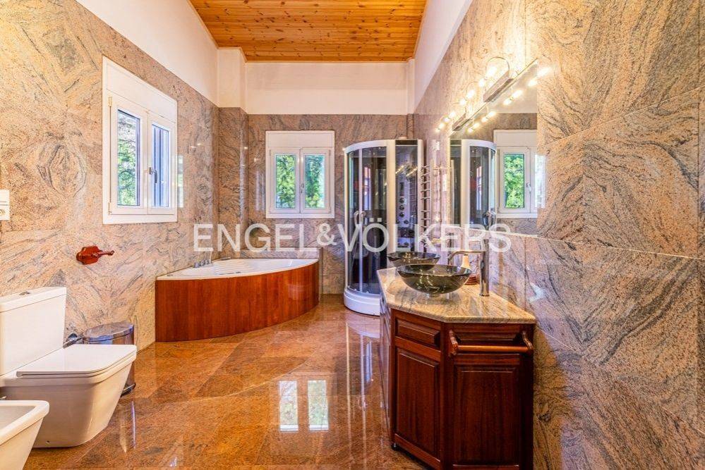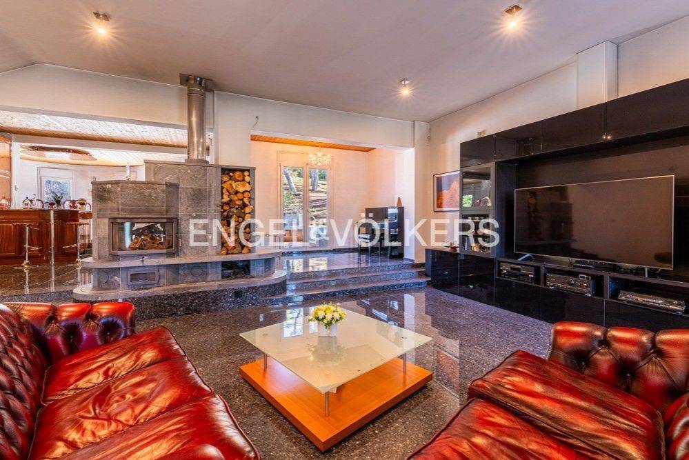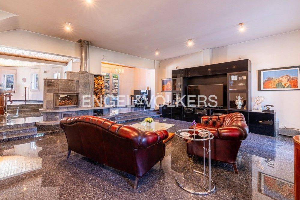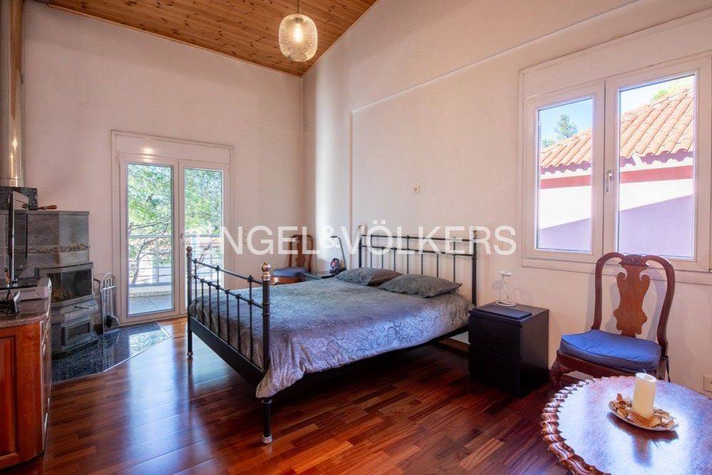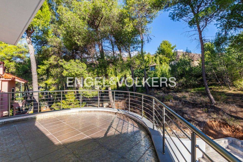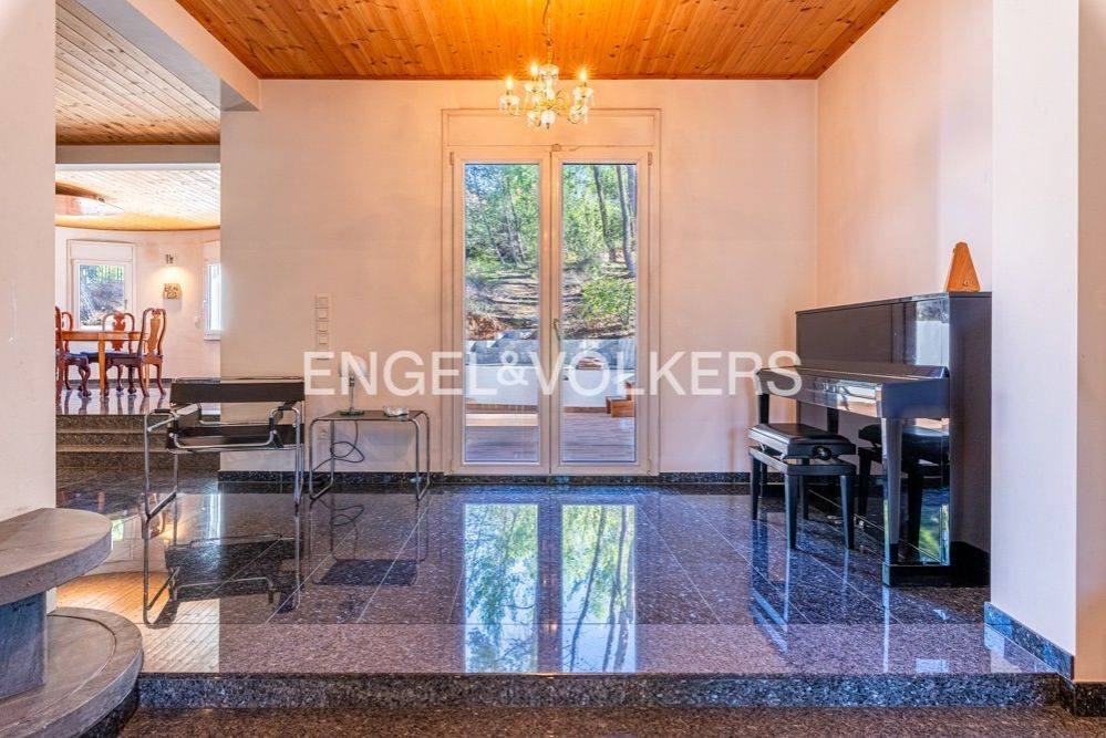 This impressive 495 sq.m. modern aesthetic residence is set on an 811 sq.m. plot in a verdant area of Dionysos. Spanning three levels, it combines luxurious living with functionality, connected by both a staircase and an elevator. The ground floor features spacious living and dining areas, a dedicated office space, a fully equipped kitchen, and a bathroom. The standout feature is the stunning energy-efficient soapstone fireplace, adding character to the living room, complemented by high-quality materials used for flooring and ceiling finishes. This level provides direct access to a large rear garden and a landscaped front garden. The upper level includes a large open-plan area with another energy-efficient fireplace, two bedrooms, and a bathroom. The master bedroom, also located on this floor, features its own energy-efficient fireplace and a walk-in closet. The lower level consists of utility and storage areas, parking spaces, a Finnish sauna, and an independent studio with one bedroom, a kitchen, and a bathroom. The property is equipped with underfloor oil heating, independently adjustable on each level, a boiler, and provisions for solar panels. Externally, the residence is surrounded by lush gardens with mature trees and a dedicated BBQ area. This beautiful property, designed with numerous amenities, is ideal for families with children of all ages, offering comfort and a high-quality lifestyle. Dionysos is located in NE Attica, in the first hills of the Penteliko Mountain, in a region with lush green surroundings, offering a totally unique and particular quality of life to its residents. It has a purely built-up character, with the presence of certain well-known cafes and restaurants in the wider region giving a cosmopolitan breeze in an admittedly very attractive suburb. Unique features: The settlement of Dionysos was created at the end of the 19th century, as a place of stay for the quarry workers that worked in the neighboring marble quarries of the Penteliko Mountain. It was named after the ancient temple of Dionysos, the ruins of which are found there. Being on the lush forested area of Mt Penteli its great location makes it a sanctuary for those seeking to enjoy life in nature, while being only a few minutes drive away from the vibrant markets of Drosia, Nea Erythrea, and Kifissia. Accessibility: The city is very close to the National Highway and the railway line from Athens to Thessaloniki pass through the municipality, near Agios Stefanos. Also via Dionysos Avenue the residents enjoy an easy access to the eastern coastal municipalities of Marathon and Nea Makri in less than 20-30’. Investment potential: Dionysos is considered a great place for people seeking to grow their families in a lush green area, close to good schools and having great amenities and access to various nearby POIs, while living not far from the happenings in the Greek capital downtown.