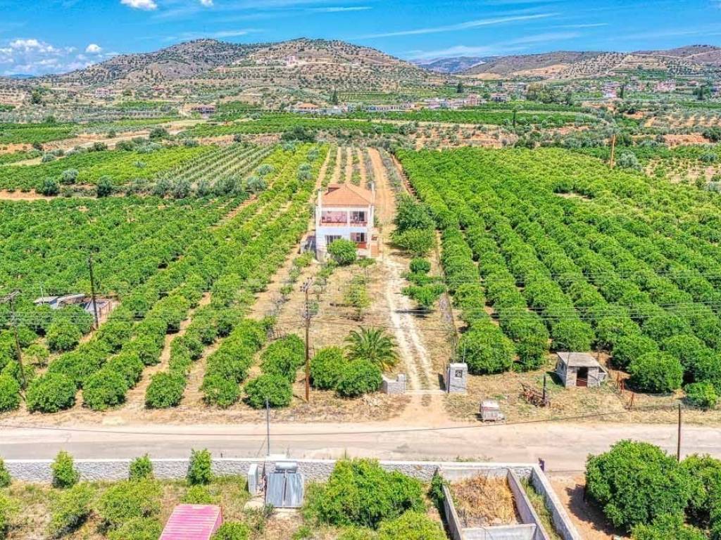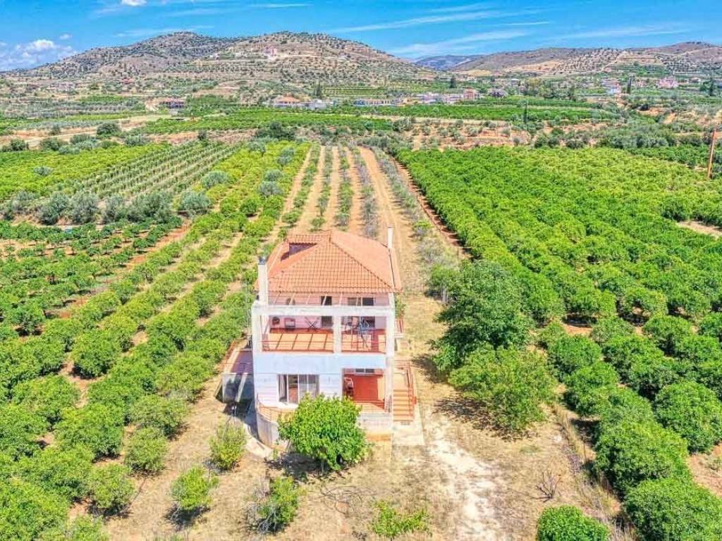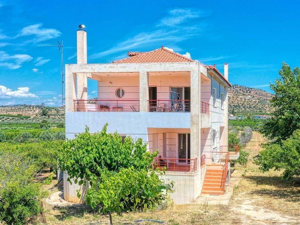 For sale an elegant maisonette in Agios Adrianos (Municipality of Nafplio). The property is 218 square meters on a 7,388 square meter plot, which includes a variety of fruit-bearing trees, offering a unique opportunity for those who love nature and privacy. The residence spans three levels: Basement: The basement has spacious storage areas and can be used as a cellar, gym, or enclosed parking, depending on the new owners' needs. Ground Floor: The ground floor features an open-plan living area, a kitchen with built-in appliances, one bedroom, and one bathroom. All spaces are bright and comfortable, with direct access to the garden and outdoor courtyards. Additionally, the ground floor can be separated from the rest of the house to become an independent apartment. First Floor: The first floor includes 3 bedrooms and 1 bathroom. All rooms are spacious, with large closets and balconies offering panoramic views of the lush surroundings. The maisonette is constructed with high-quality materials and features modern amenities such as central heating, air conditioning, and double-glazed windows. The exterior spaces include large terraces, a 200 square meter garden, and a BBQ area. Finally, the property, built in 2005 and renovated in 2020, allows for an additional 100 square meters of building on the plot. Location: Nafplio is located in the Eastern Peloponnese and was the capital of the Greek state during the period 1828 - 1833. The historic center of Nafplio has been classified as a traditional settlement. Unique Features: Nafplio is one of the most beautiful cities in Greece and is known for its well-preserved old town that stands out for its beautiful cobbled streets, elegant neoclassical and elegant mansions and Turkish fountains. One of the most important parts of Nafplion is the Castle of Palamidi, located 216 meters above the town which has the best view of the entire Argolic Sea and the Mycenaean plain. Accessibility: Nafplio is just two hours from the center of Athens. The Argolida Bus Station serves Nafplio as well as the rest of the prefecture, connecting it with Argos, Corinth and Athens. The port of Nafplio is the largest in the eastern Peloponnese and serves mainly pleasure boats, tourist boats to the islands of the Argo Saronic Gulf and some cargo ships. Investment Opportunity: In recent years, investment interest in the area has increased significantly as Nafplio attracts a large number of Greek and foreign investors.