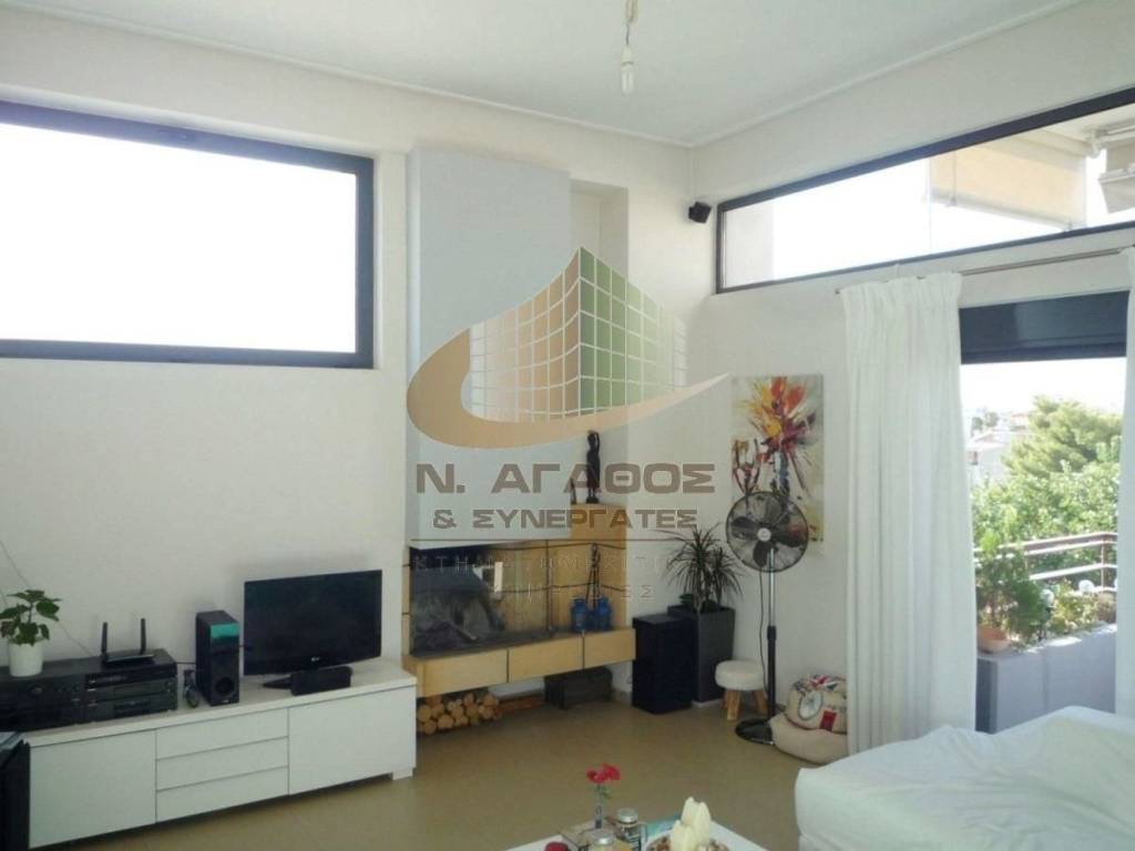 Argyroupoli. Apartment of 90 sq.m., 3rd floor penthouse, built in 2010, corner, very bright and airy, with an open plan living room - kitchen with breakfast bar, 2 bedrooms, bathroom, wc, facade veranda, balcony at the back and private roof terrace of 70 sq.m. with pergola and barbecue. It has unobstructed horizon with partial sea view, heating autonomy using oil, underground garage for 2 vehicles, storeroom, fireplace, security door, electric shutters, aluminum frames with double glazing, insect screens, awnings. Price 395,000 euros. (ref 1704007 AG) Real Estate Agency - N. Agathos & Associates.