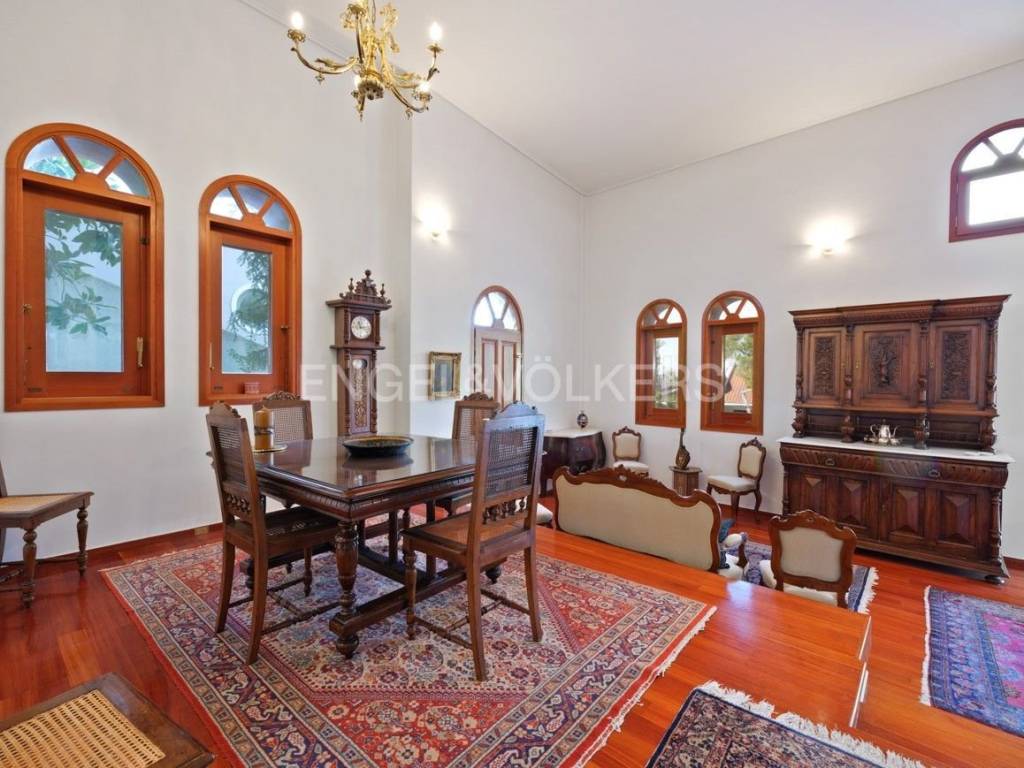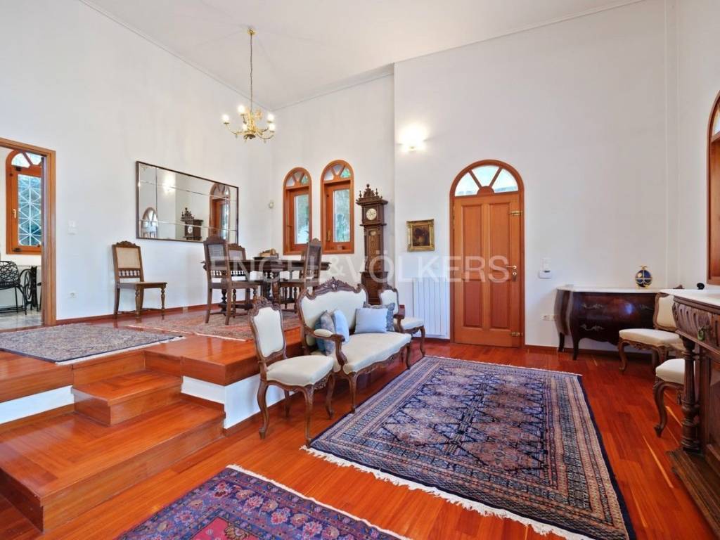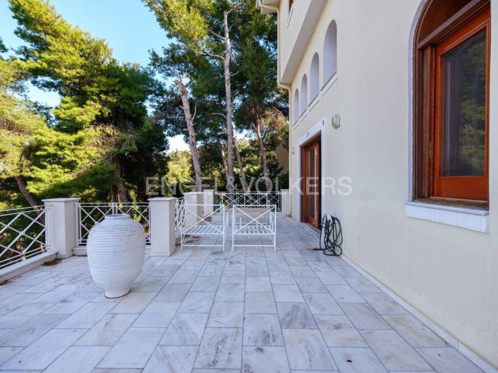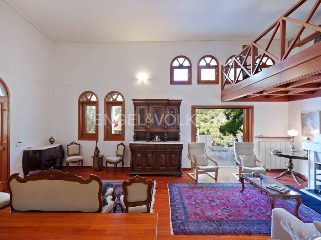 Engel & Voelkers presents this wonderful detached house in Efedri Dionisou. The first floor consists of a beautiful high-ceilinged reception area with a marble fireplace and direct access to a wide veranda, a modern kitchen, a guest WC, and a spacious patio with a BBQ. The mezzanine features a study area that adds to the lovely setting. On the second floor, there is a bedroom with an en-suite bathroom and two additional bedrooms that share a bathroom. The view from this floor is breathtaking. The comfort of the house is enhanced by the ground floor, which includes a large closed garage for two cars, a service room, a laundry room, a wine cellar, and ample storage space. An internal staircase and elevator connect all levels of the residence. It is equipped with an oil heating system with a high-pressure burner and independent heating control for each floor, air conditioning in the bedrooms, window screens, a water tank, a gasoline generator, a fire extinguishing system, a telephone center, an alarm and camera system with two recorders. The use of high-quality building materials further emphasizes the luxury of this residence. The location is ideal for residents seeking a high quality of life close to nature. The residence is offered furnished or unfurnished. Efedroi Dionysou/Ekali is located in NE Attica, in the first hills of the Penteliko Mountain, in a region with lush green surroundings, offering a totally unique and particular quality of life to its residents. It has a purely built-up character, with the presence of certain well-known cafes and restaurants in the wider region giving a cosmopolitan breeze in an admittedly very nice suburb. The settlement of Dionysos was created at the end of the 19th century, as a place of stay for the workers at the neighboring marble quarries of the Penteliko Mountain. It was named after the ancient temple of Dionysos, the ruins of which are found there. Via Dionysos Avenue it communicates easily with the nearby commercial centres of Drossia, Nea Erythrea and Kifissia as well as with the eastern coastal municipalities of Marathon and Nea Makri.