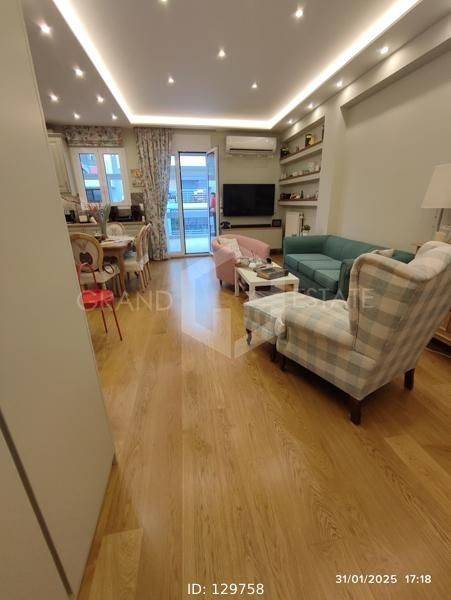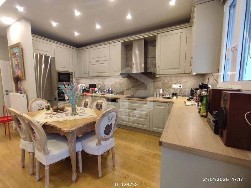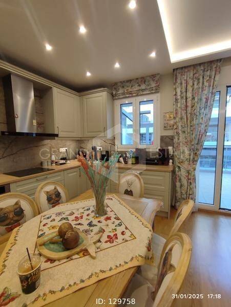 Goudi, Agios Thomas - Apartment 82sqm electrical appliances furnished, bedrooms 2, levels 1, 4th (82sqm), penthouse, renovated, year built 1973, renovation year 2024, energy class B+, living room, kitchen, bathroom, wc, heating type: autonomous (natural gas), air condition, quiet, dual aspect apartment, luminous, unobstructed view, frontage, painted, electric roller shutters, solar heater, balconies, large balconies, tents, elevator, loft storage, built in appliances, aluminum frames, double glazed windows, door screen, wood & tile floors, night electricity discount rate, secure door, alarm, luxurious, pets allowed, residential zone, north-eastern orientation, access from asphalt, investment property, short term lease, close to market (up to 100m), close to bus stop (up to 500m), close to metro/train (up to 1000m), close to hospital (up to 100m), close to super market (up to 100m).