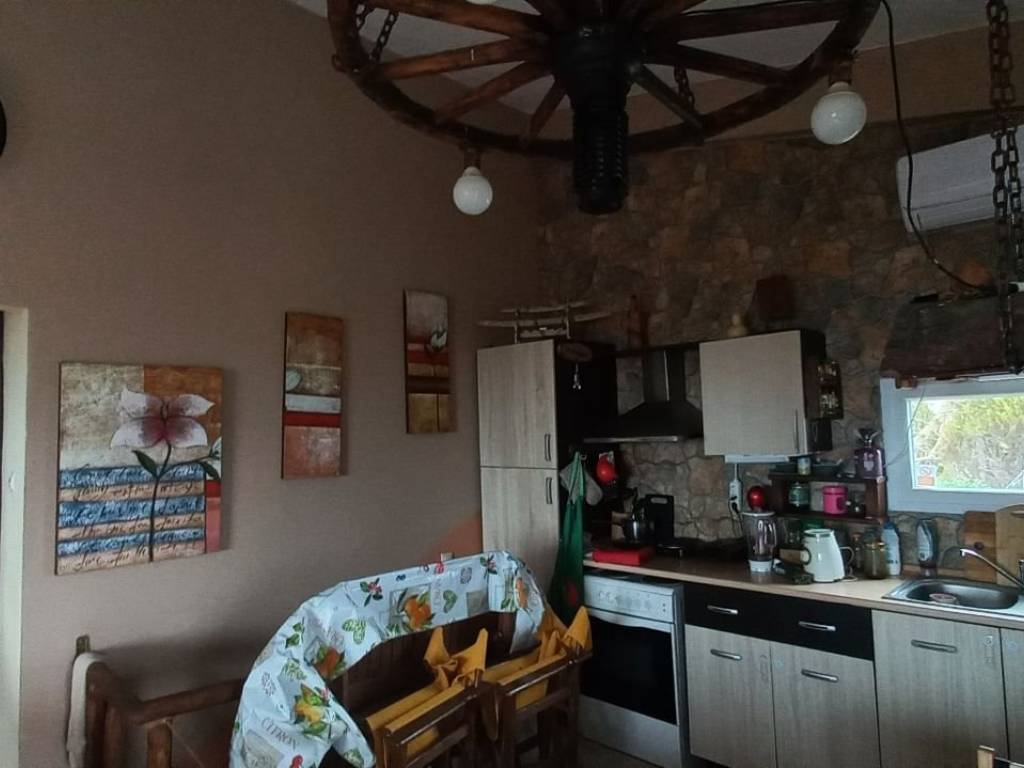A detached house built on 2 levels.On the mezzanine the 70 sq.m. which consist of 2 bedrooms, living room, and bathroom. Below the mezzanine there is a 60 sq.m. apartment. consisting of a living room, kitchen, storage room, bathroom and a large bedroom.They are also connected by an internal staircase. The plot on which it is built is 230 sq.m. , at a distance of about 300 meters from the beach. It has a sea view. A very good investment proposal since it can house even 2 families