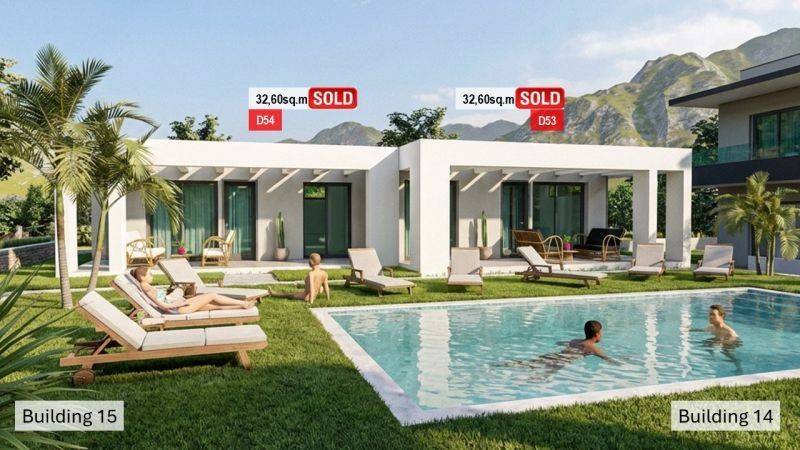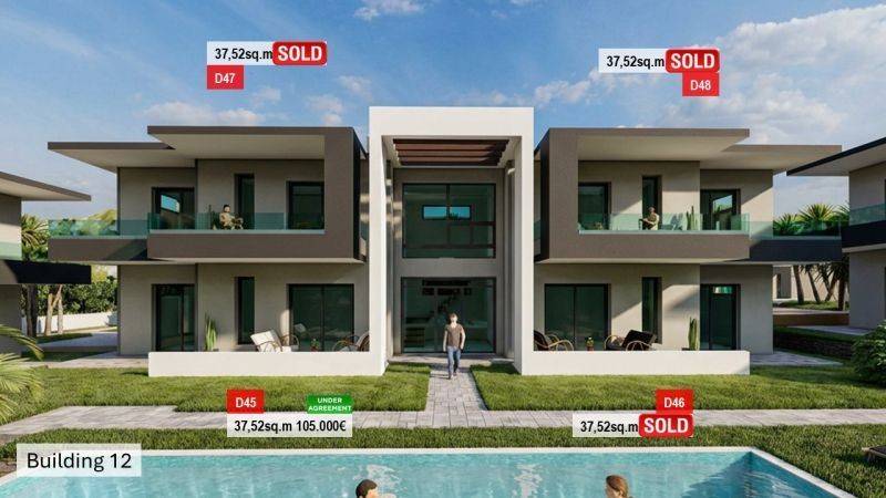It consists of 54 residences, emphasizing modern design, within a closed fenced area providing security and tranquility. The materials and design are harmonized with the natural landscape, creating a harmonious blend between contemporary aesthetics and the traditional value of the area. Additionally, the complex has communal swimming pools, tastefully landscaped green spaces with trees and parking spaces.