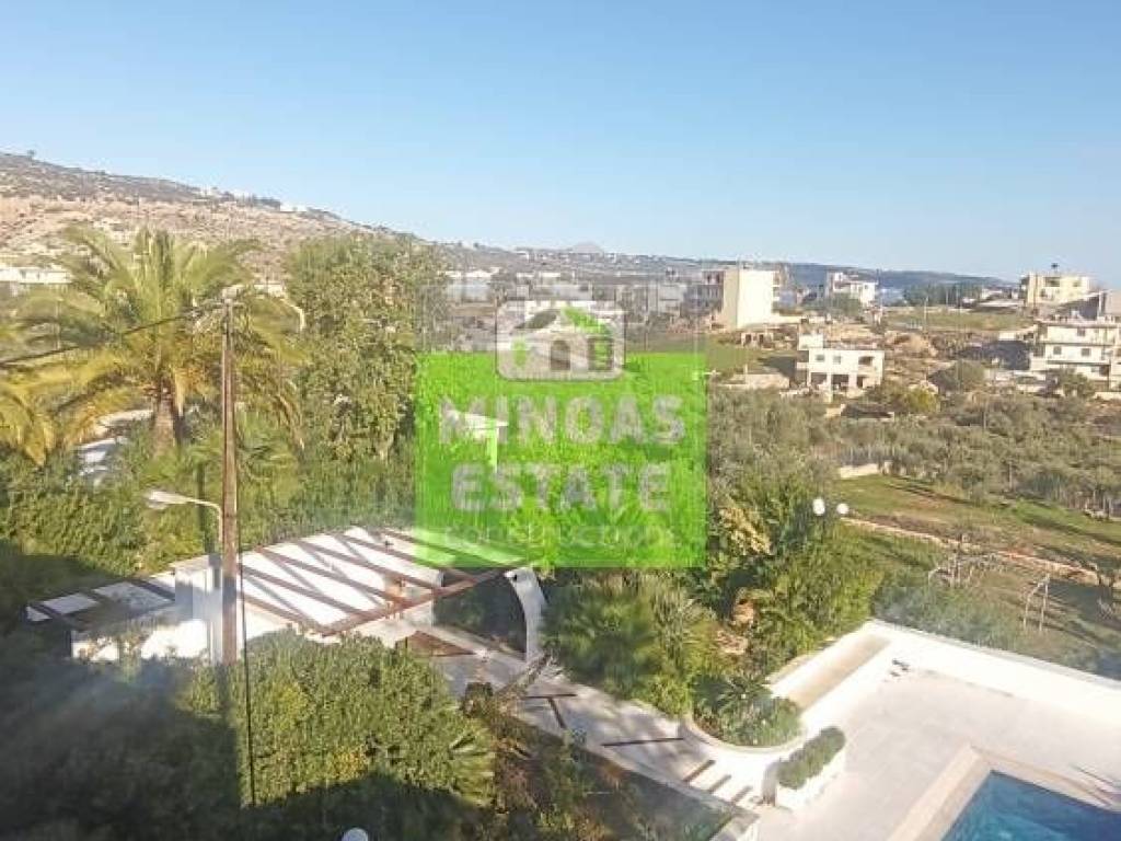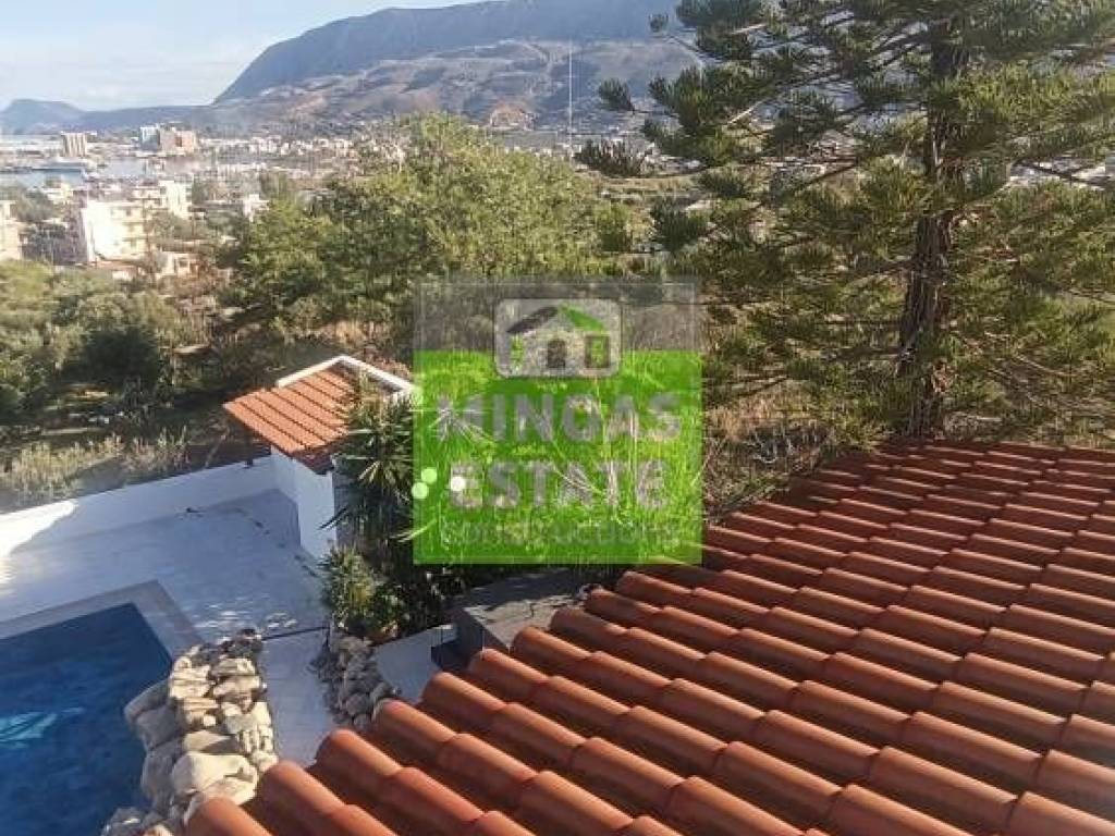 Center: Renovated bright Studio 75 sq.m. for rent. in 2500 sq.m. luxury plot, on the 1st floor with indiviSouda, dual heating (air conditioning) and fireplace. It consists of a single bedroom- 1 kitchen-living room, a large garden, and a very comfortable bathroom. It is fully furnished, equipped, with electrical appliances, built in 2000, painted and has a nice view, swimming pool, BBQ, outdoor bar and wc for the pool and outdoor hot tub, 2 outdoor parking spaces, wooden floors, fireplace, solar water heater. It is ideal for workers. Price €1,000 | Property Code: #E-200412