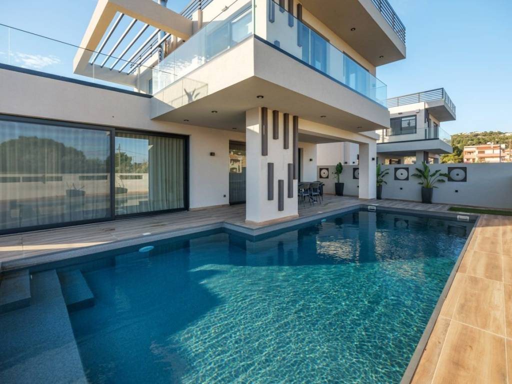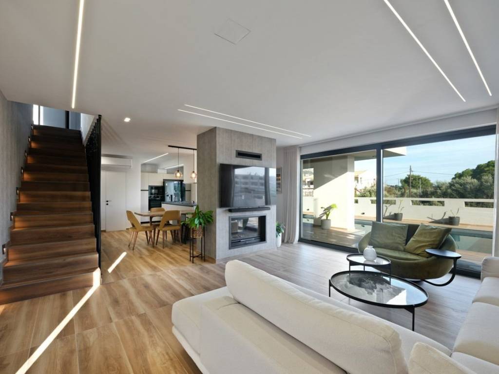 Luxury newly built maisonette in Porto Rafti 220 sqm consisting of three levels, in the most beautiful part of the area and 100m from the sea. Indulge in its luxury and give yourself and your family the quality of life it can offer you. It is of excellent construction of 2024 and has high quality materials. Equipped with underfloor heating, heat pump, energy frames, energy fireplace, elevator, alarm, solar panel, satellite dish and swimming pool. It consists of 2 living rooms, 2 kitchens, 4 bedrooms, 2 bathrooms and 1 WC. It also has one underground parking space and five above ground. Future owners will also have access to outdoor amenities such as the swimming pool, relaxation and fitness area. Live this amazing experience in this magnificent maisonette where greenery, sea, style, comfort and of course the quality of life that Porto Rafti gives you. It is waiting for you to enjoy it. Location: Porto Rafti is located 7 km east of Markopoulos, on the southern shores of the Southern Evia Gulf, and on the north, it borders Athens Airport. It is approximately 40 km away from the capital. The bay of Porto Rafti includes 3 islands (Rafti, Raftopoula, Leek) and coasts from Erotospilia to Avlaki. Unique Features: Porto Rafti today is one of the most famous summer resorts in Eastern Attica which offers natural beauty thanks to its beautiful beaches with crystal clear waters. The area also provides a variety of watersports activities. Also, Porto Rafti is known for its rich history as it includes the famous archeological site of Vravrona with its famous ancient temple. Porto Rafti includes a large selection of cafes and little taverns which are popular for their seafood. Lastly, the small port of Porto Rafti is a small jewel and a place which is ideal for walks by the sea. Accessibility: Access to Porto Rafti is served by Attiki Odos, the coastal boulevard and the neighboring metro stations and suburban "Koropi". Investment Potential: Due to its rich natural beauty as one of the most popular tourist resorts in Athens and its relatively close distance from Athens, Porto Rafti has become attractive to real estate investors as property prices offer a good return of investment.