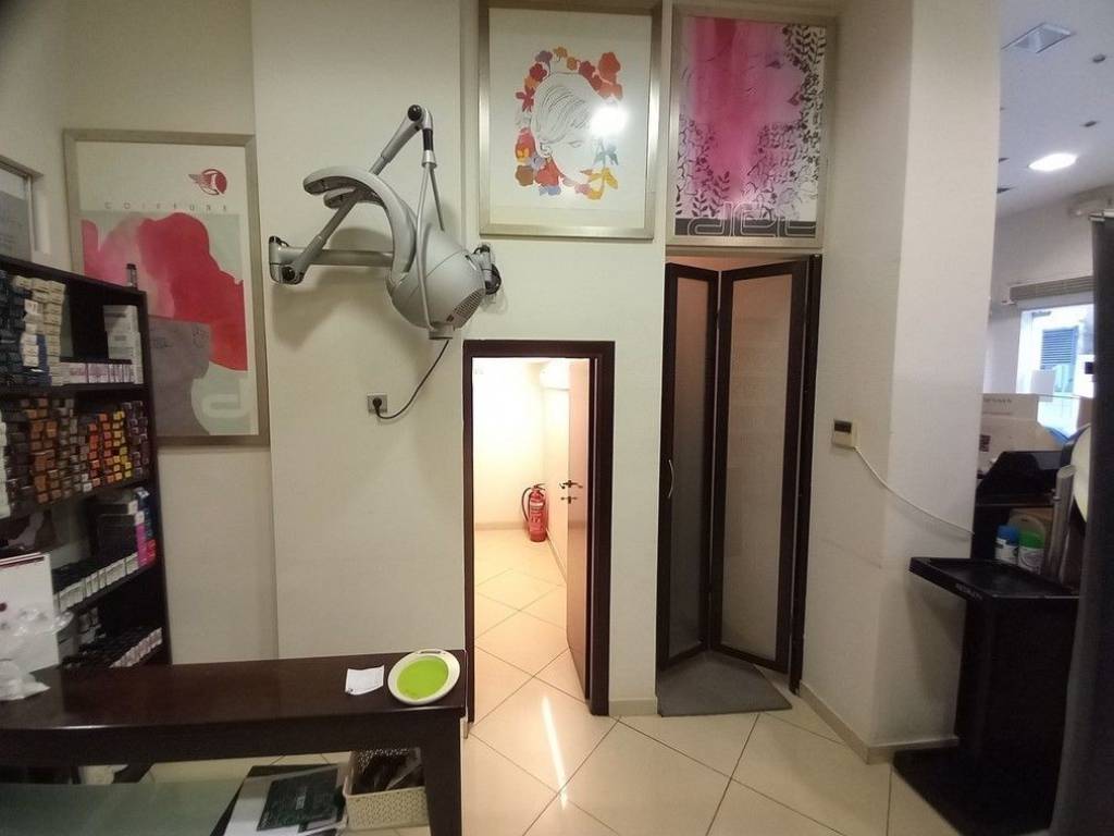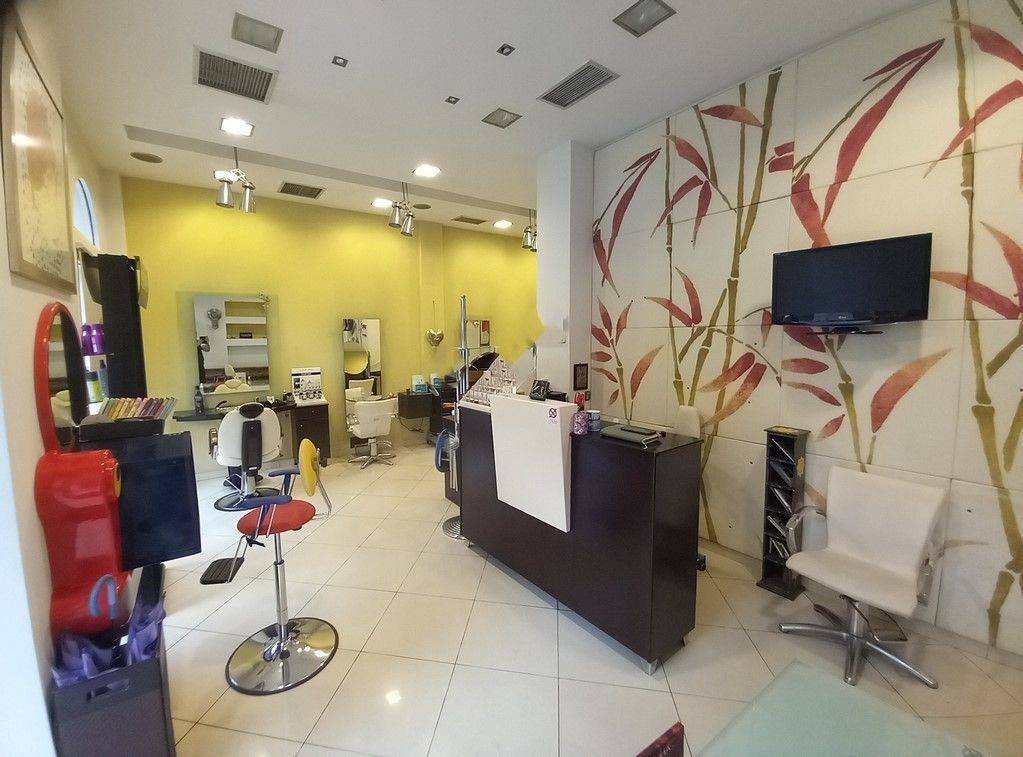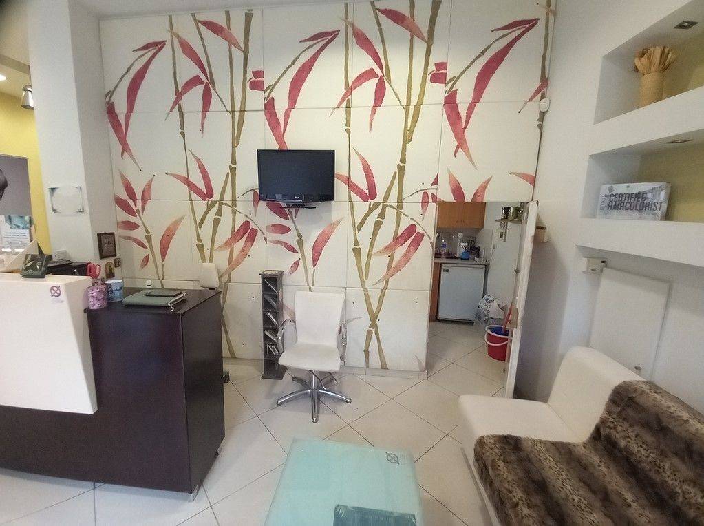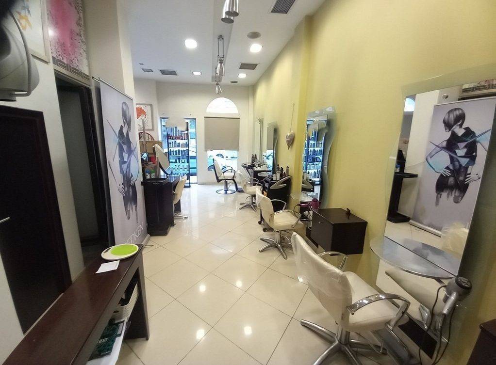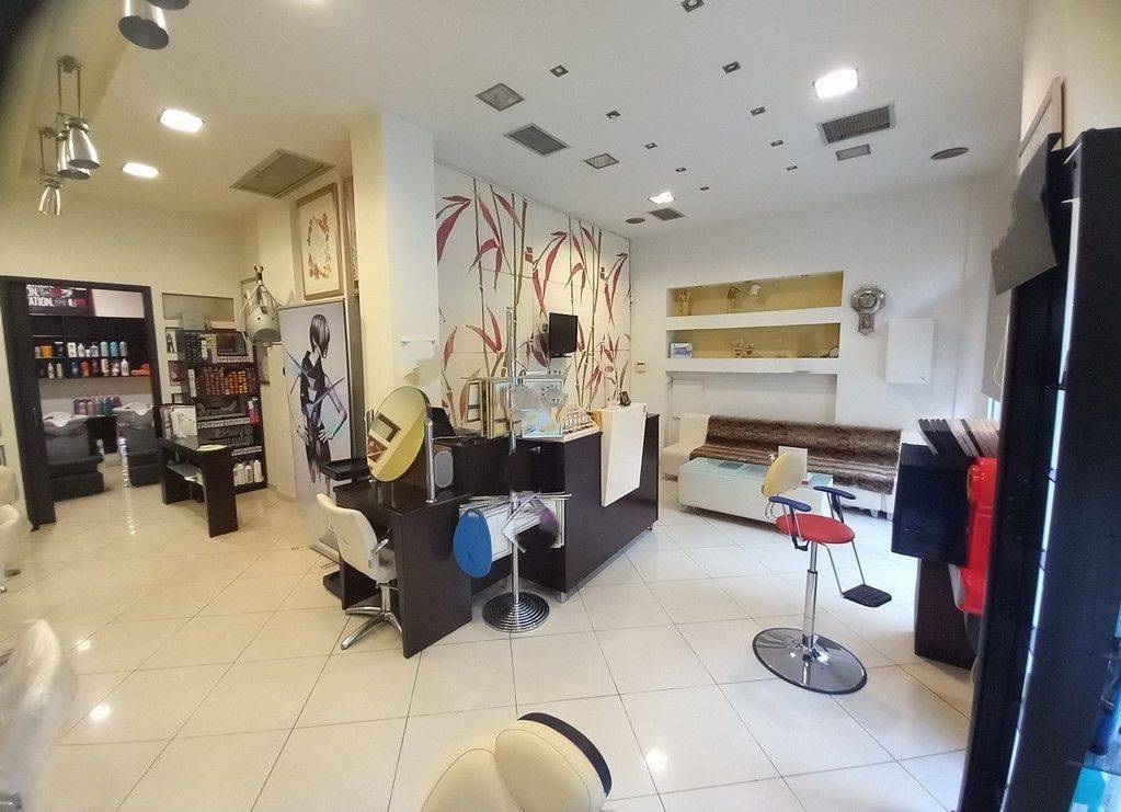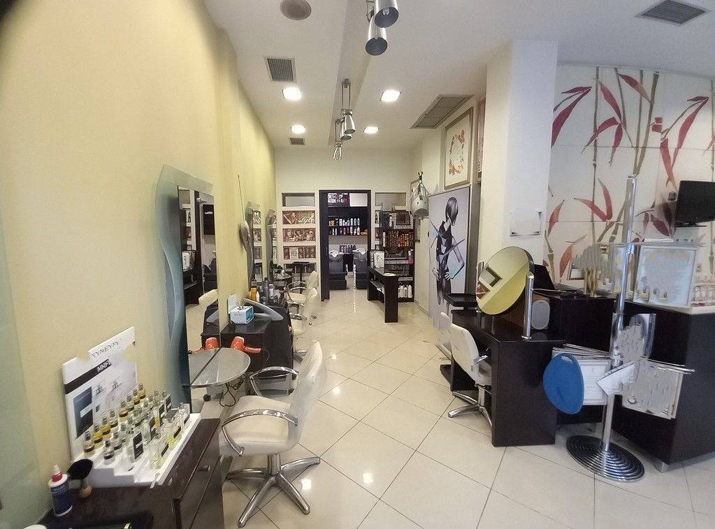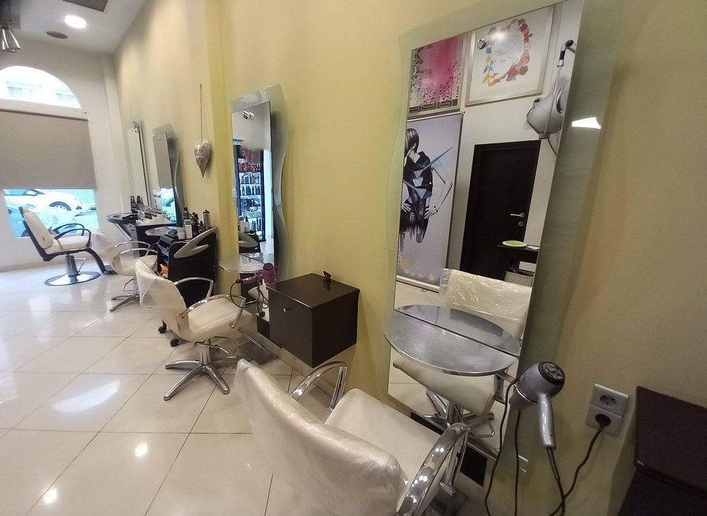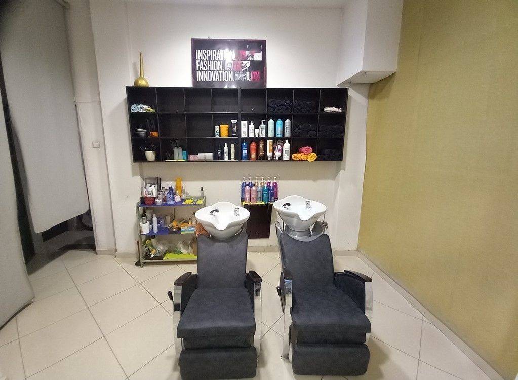 Διατίθεται πλήρως εξοπλισμένη με πέντε θέσεις εργασίας, δύο λουτήρες και έναν χώρο που μπορεί να χρησιμοποιηθεί και ως χώρος αισθητικής.