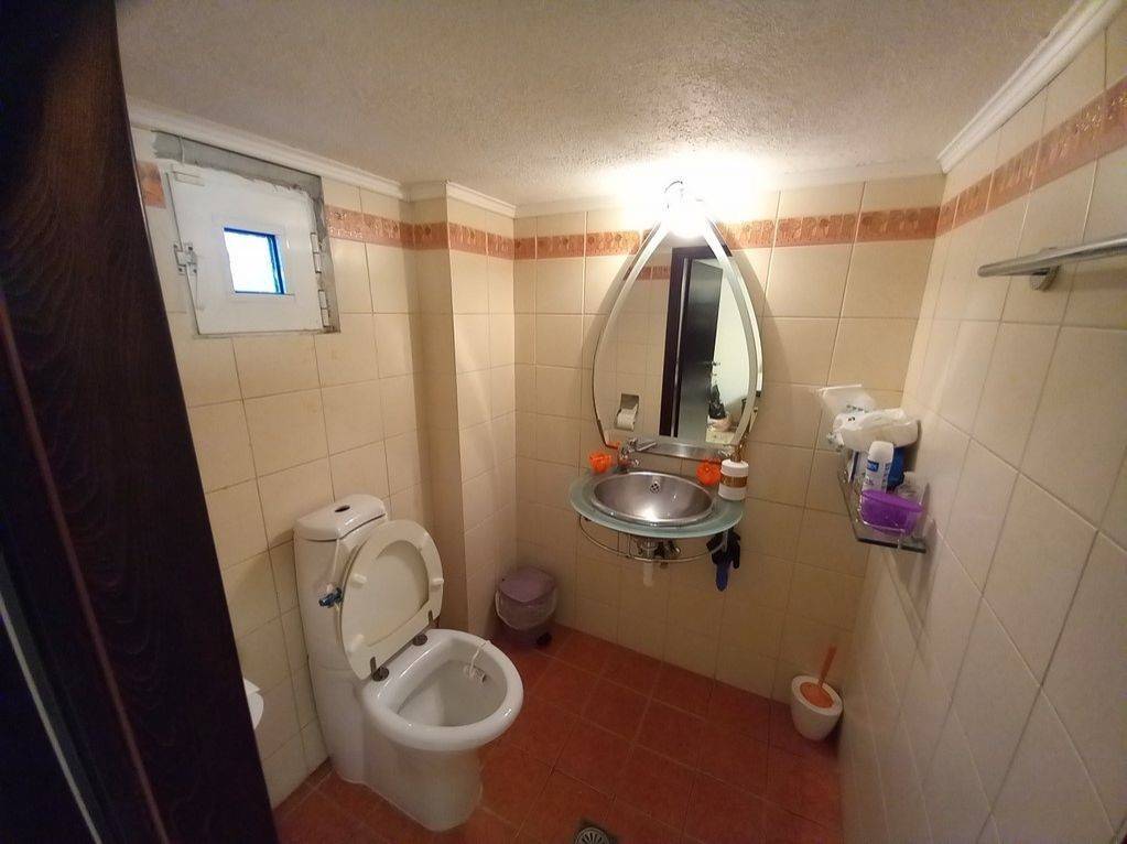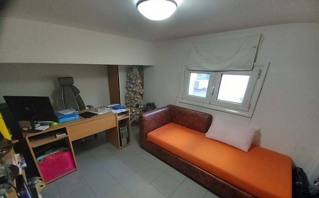 Έχει δάπεδα από πλακάκια και εξωτερικά κουφώματα ξύλινα.