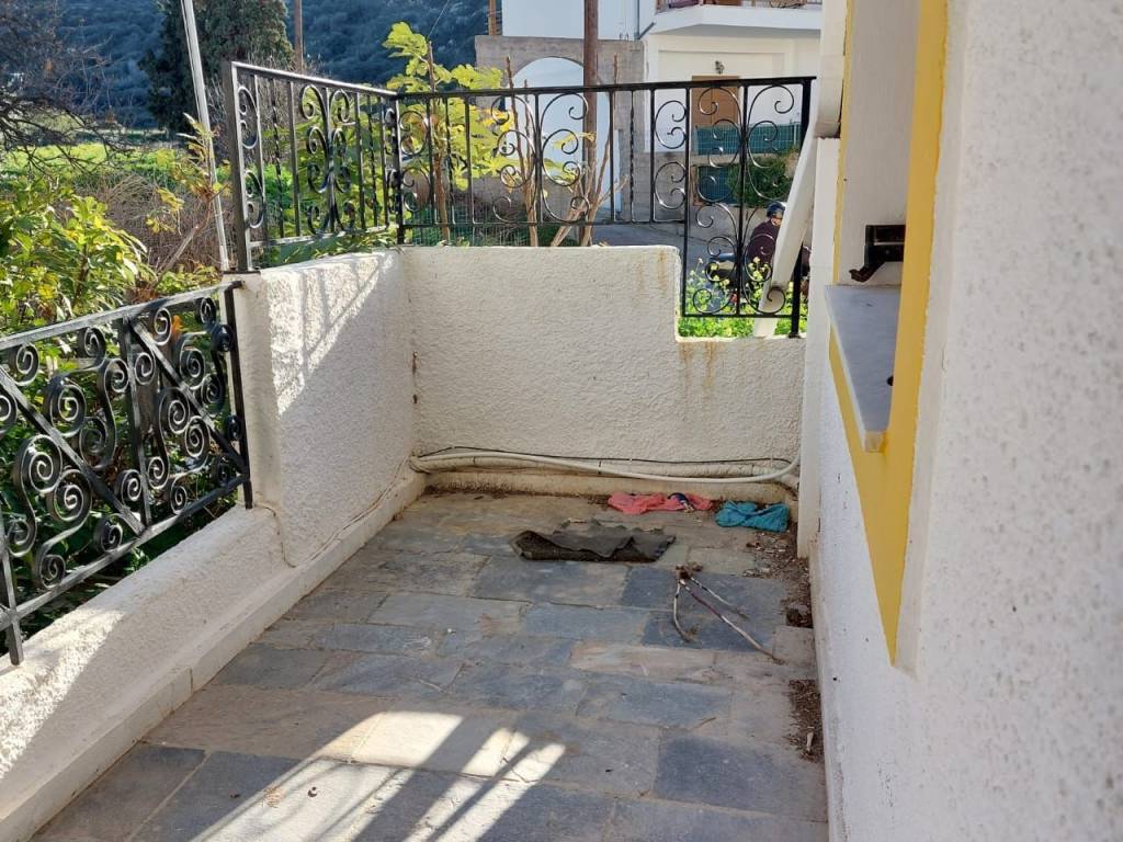 Petras, Sitia, East Crete: A very nice maisonette 250meters from the sea. The property is 96m2 in total and is on two levels. The lower level is 48m2 consisting of 2 bedrooms and a bathroom. There is a front courtyard as well as a rear courtyard. An internal wooden staircase leads to the second level which is also 48m2 consisting of an open kitchen-living area, a bathroom, a nice front balcony as well as a rear balcony. The property has good access and all services are connected. Lastly, the property enjoys views to the village and mountains.