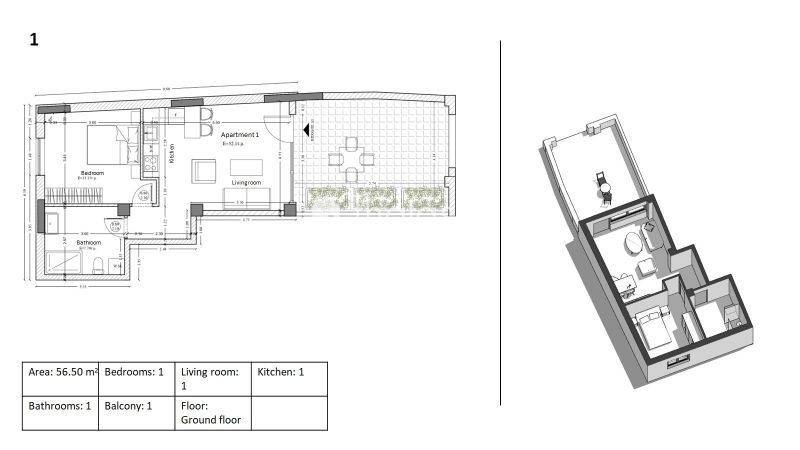 Ground Floor Apartment: 57 sq.m., 1 Bedroom, Private Garden