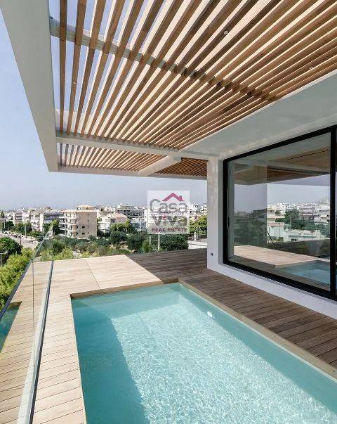 ΑΓΙΑ ΠΑΡΑΣΚΕΥΗ Αγιάννης, υπό κατασκευή διαμέρισμα 142 τ.μ., 5ου-6ου ορόφου, ρετιρέ, με roof garden αποκλειστικής χρήσης και πισίνα, προσόψεως, άνετο σαλόνι με τζάκι, δρύινα δάπεδα παντού, ενιαία κουζίνα, 1 master υ/δ με το μπάνιο του, wc, στο δεύτερο επίπεδο έχουμε 2 υ/δ, 1 μπάνιο, kitchenette, πλήρως ανεξάρτητη θέρμανση με αντλία θερμότητας, ενδοδαπέδια και αυτονομία ανά επίπεδο, boiler, ηλιακός, κλιματισμός, αλουμίνια θερμοδιακοπής, ενεργειακά τζάμια, σίτες, ηλεκτρικά ρολά,προεγκατάσταση συναγερμού, πόρτα ασφαλείας, θερμοπρόσοψη, αποθήκη, 2 θέσεις πάρκιν πιλοτής. Οι φωτογραφίες είναι ενδεικτικές του ακινήτου., τιμή 740.000€ (335)