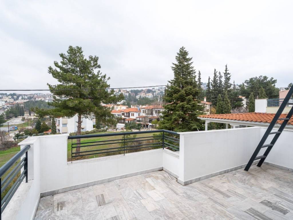 In a quiet and privileged neighborhood of Panorama, this tasteful single-family house, with a total area of 236 sqm., offers comfortable and functional spaces, high-quality construction, and modern amenities. It is arranged on two levels, with an additional semi-basement area for parking and storage, and is surrounded by a beautiful private garden of 200 sqm., ideal for relaxation and entertainment. The ground floor consists of a spacious living room with a fireplace, which creates a warm and welcoming atmosphere, a separate kitchen with ample storage space, a WC, and an extra room that can be used as an office or guest room. The large glass surfaces allow for abundant natural light, while access to the verandas and the garden ensures a harmonious connection between the interior and exterior spaces. The first floor houses three large bedrooms, all equipped with built-in wardrobes, offering excellent storage space. The master bedroom has its own bathroom, offering privacy and comfort, while the other bedrooms are served by a second, spacious bathroom. The perimeter verandas, equipped with awnings, offer beautiful views and additional outdoor relaxation areas. In the semi-basement, there is enclosed parking for two cars, a large single storage area that can be adapted for additional use, and another bathroom, offering great flexibility and practicality. The residence features modern amenities and quality construction materials, such as a security door, aluminum frames, luxurious floor tiles, air conditioning, an alarm system with security cameras and a solar water heater. Heating is autonomous and operates with gas, ensuring energy efficiency and economy. This is an excellent choice of residence, combining comfort, privacy, and modern amenities in one of the best areas of Panorama. Location: Panorama is located at the east part of Thessaloniki, at the foot of Mount Chortiatis and at an altitude of 250 meters. Unique Features: Panorama, due to its amazing location as it is situated in a beautiful forest, with panoramic views of the entire Gulf of Thessaloniki, is considered one of the most privileged areas of the wider region, offering an abundance of residences of high standards and special aesthetics. The area also has its own municipal summer cinema, swimming pool and a gym of Olympic standards. Panorama has three public schools, a high school and many private schools of all levels. Accessibility: Panorama is just 14 km from the center of Thessaloniki. Public transport to the city center and to other areas is provided by bus line 58 of the O.A.S.TH. Investment Opportunity: Panorama maintains a high level of investment interest. It is a purely residential area of middle and high incomes, and in recent years there has been a significant increase in the construction of luxury housing and single-family homes, a result of the socio-economic development of the country until recently.