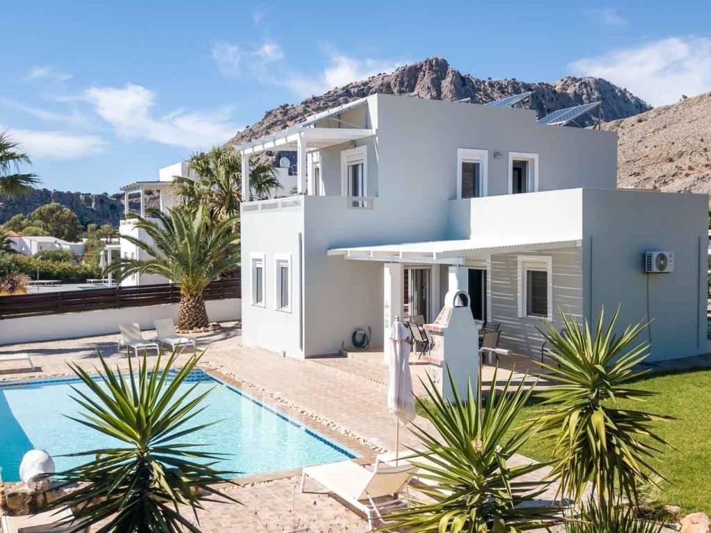 Tucked away in the breathtaking Bay of St. Nicolas, Villa Alexia is a spacious and elegantly designed 4-bedroom retreat, offering a perfect fusion of modern comfort, natural beauty, and Mediterranean charm. With the majestic mountains as a backdrop and the sparkling Aegean Sea in view, this home is a sanctuary of relaxation and style. Step into a sun-drenched paradise, where a large private swimming pool, an expansive walled garden, and a lush green lawn create the ultimate setting for outdoor living. Whether you're soaking up the sun, enjoying a leisurely swim, or dining al fresco under the stars, every moment here feels like a dream. Inside, the villa boasts contemporary and stylish interiors, designed for both comfort and sophistication. The open-plan living area is bathed in natural light, seamlessly connecting the modern kitchen, dining space, and inviting lounge—perfect for entertaining or unwinding after a day of island adventures. All four spacious bedrooms are equipped with air conditioning/heating, ensuring year-round comfort, while the WiFi and pool heating add convenience to your stay. Villa Alexia is perfectly positioned just a 15-minute walk from Navarone Bay, where crystal-clear waters meet golden sands. Meanwhile, the world-renowned village of Lindos and the charming resort of Pefkos are just a 5-minute drive away, offering an abundance of tavernas, shops, and nightlife. Whether you're seeking a luxurious holiday retreat, a prime investment, or a forever home, Villa Alexia is a rare gem in one of Rhodes’ most sought-after locations. Don’t miss the chance to make this Mediterranean haven yours! ation: Lindos is 48 km south from Rhodes town and 52 km from the International Airport. Unique features: Lindos, as is the Old Town of Rhodes, one of the island's hot spots! The radiant, white washed dwellings cling elegantly to the foothills of the Acropolis, the second largest in Greece and is surrounded by coves of sparkling turquoise sea. A protected community therefore free from vehicles and pollution adding to the charm of this picturesque traditional village. The Lindos region is divided into Lindos and the surrounding villages and resorts such as Vlicha Bay, Kalathos, Malona, Massari, Haraki, Pefkos, Lardos and Pilona. Accessibility: Lindos and the surrounding villages are all accessible by a regular bus service or a one hour or so drive by car or taxi. Boats may also moor in the little bay of Lindos. Investment potential: Lindos is one of the most sought-after villages in the entire Mediterranean region, and home ownership is extremely prestigious here. For this reason alone, the prices are more stable than in other regions. Properties in the area are almost exclusively traditional houses and manor houses rich in history. The whole village is listed and becomes the island’s hotspot each summer. The vicinity of Lindos is also a protected area with strict building regulations therefore will never be over developed and offers attractive locations with amazing sea views at very reasonable prices.