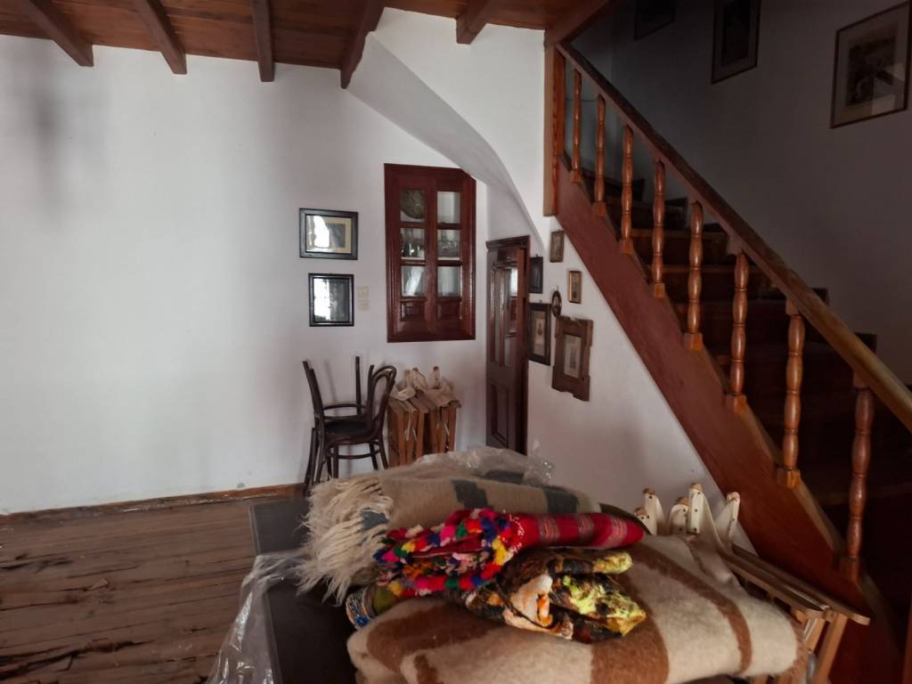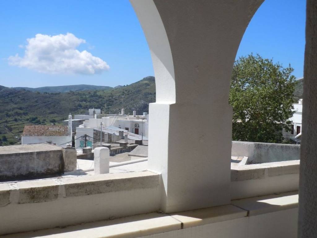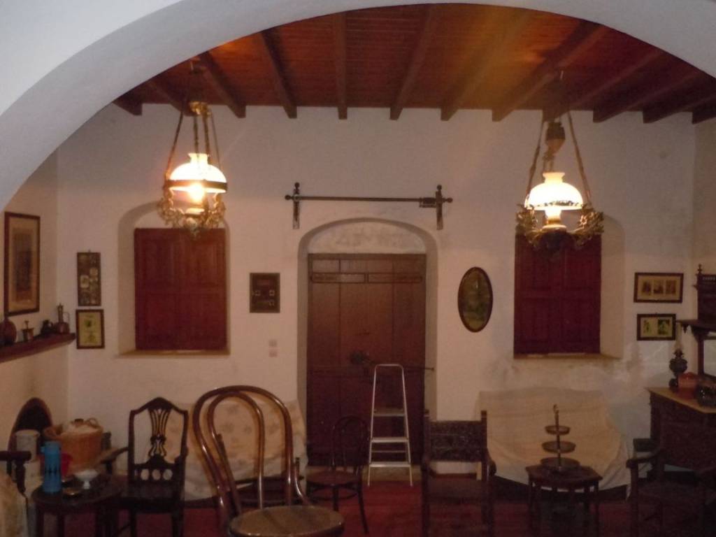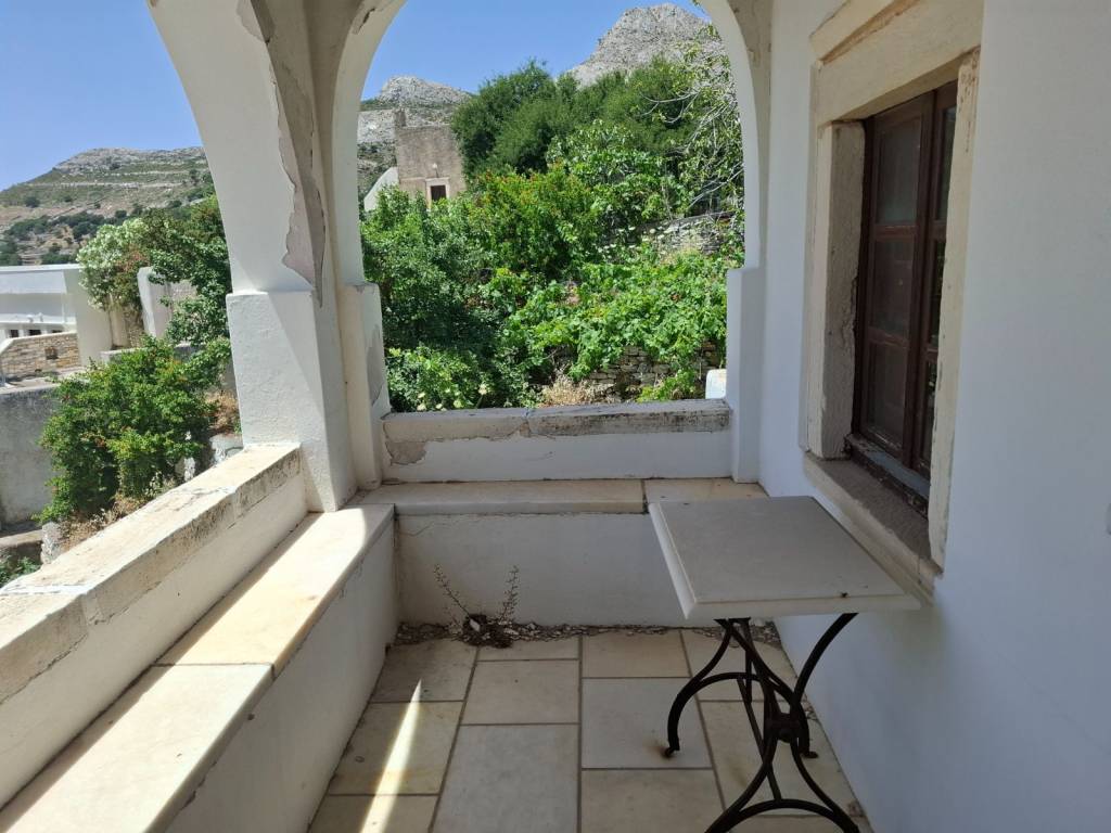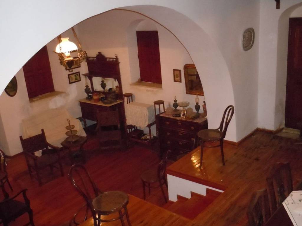 Traditional detached house in Apeiranthos, Naxos Two-storey detached house on a plot of 214 sq m + 920 sq m garden around the house. It is traditional, with an internal wooden staircase, fireplace and external wood-burning oven. The original house dates back to 1733 and has been a town hall and a primary school. It is probably the largest house in Apeiranthos, the only one with a garden all around, beyond the inner courtyard and in the center of the village. It is located in the most central point of the village, right above the square. The garden around the house is almost 1 acre and is planted with pear, apple and fig trees. Due to its amphitheatrical slope, the garden is terraced, as estates are traditionally built throughout the island. Ground floor 100 sq m, living rooms, dining room, kitchen, additional 37 sq m storage rooms and 1 external bathroom, approximately 10 sq m, in the yard. First floor 67 sq m 3 bedrooms and 1 bathroom. Balconies in each bedroom and external entrance on the first floor. It is also being sold along with the furniture,
