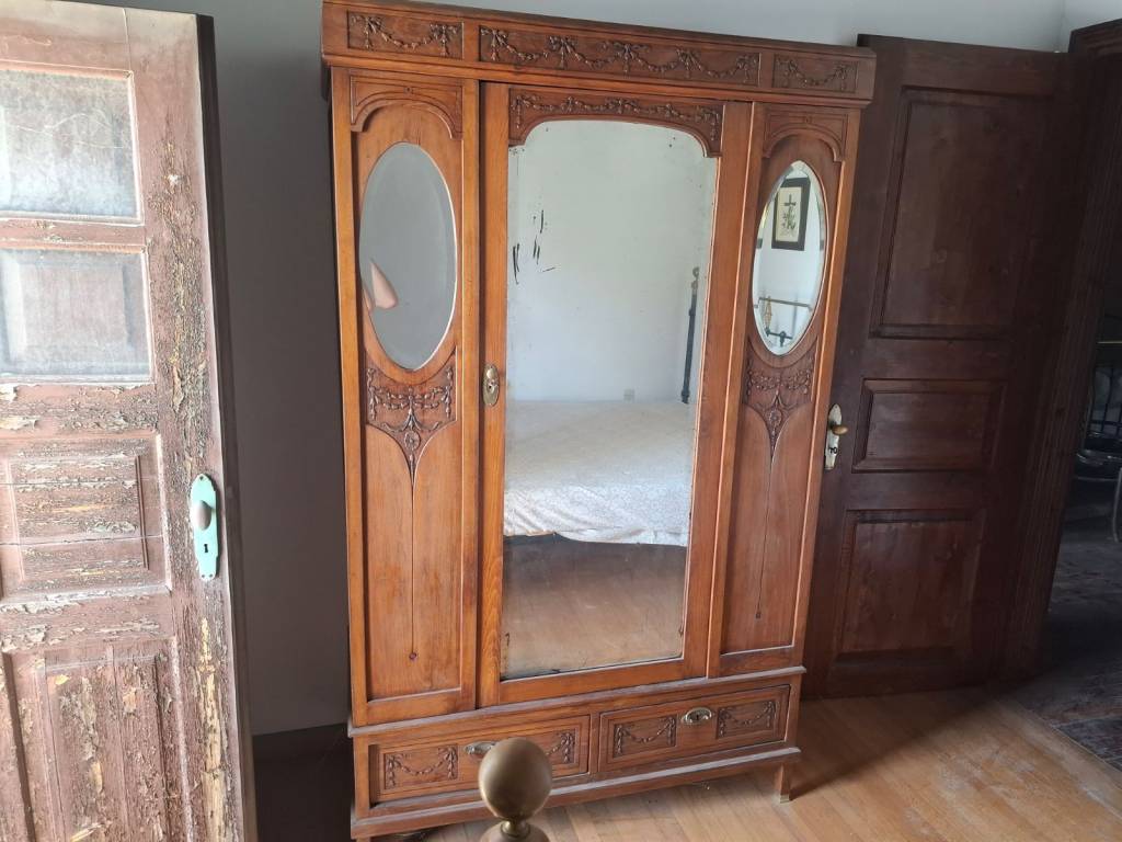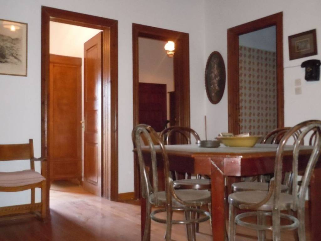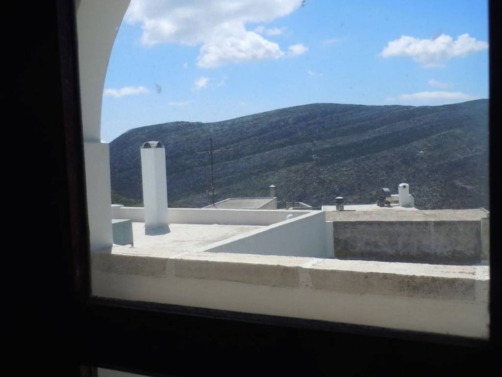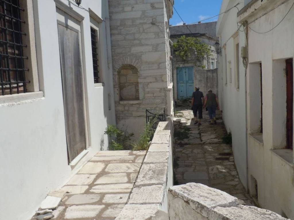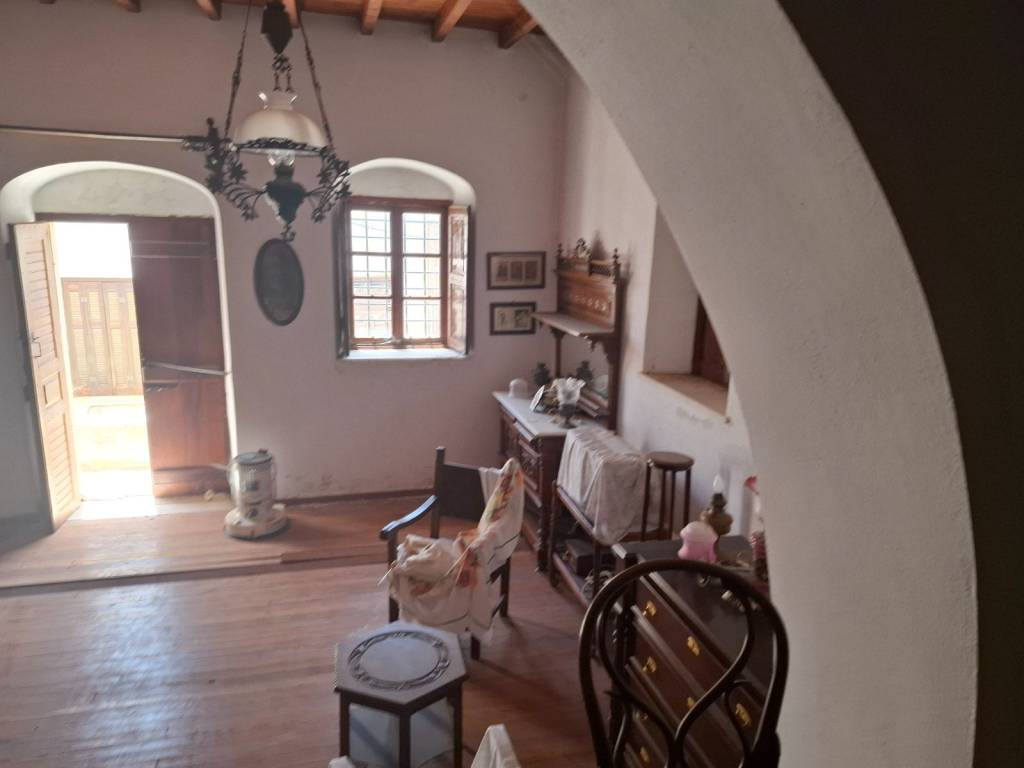 Traditional detached house in Apeiranthos, Naxos Two-storey detached house on a plot of 214 sq m + 920 sq m garden around the house. It is traditional, with an internal wooden staircase, fireplace and external wood-burning oven. The original house dates back to 1733 and has been a town hall and a primary school. It is probably the largest house in Apeiranthos, the only one with a garden all around, beyond the inner courtyard and in the center of the village. It is located in the most central point of the village, right above the square. The garden around the house is almost 1 acre and is planted with pear, apple and fig trees. Due to its amphitheatrical slope, the garden is terraced, as estates are traditionally built throughout the island. Ground floor 100 sq m, living rooms, dining room, kitchen, additional 37 sq m storage rooms and 1 external bathroom, approximately 10 sq m, in the yard. First floor 67 sq m 3 bedrooms and 1 bathroom. Balconies in each bedroom and external entrance on the first floor. It is also being sold along with the furniture,