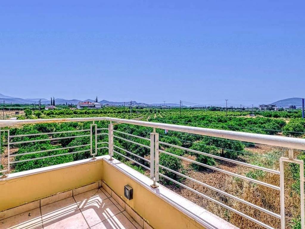 In a lush location in Nea Tiryntha, 5 minutes from Nafplio, there is this beautiful 198 sq.m. maisonette, built in 2008 and in very good condition. Layout: Basement: Closed parking, storage, and 1 room. Ground Floor: Ascending the external staircase of the property, we find on the elevated ground floor the dining room with the living room and the fireplace, the kitchen with built-in cupboards, 1 WC, and a large veranda with a wonderful view of the City of Nafplio. First Floor: Continuing from the internal staircase, we reach the 1st floor where we find 3 large bedrooms with built-in wardrobes and 1 bathroom. Additional Features: The property is on a corner, sunny, airy, with central heating, double glazing, and a solar water heater. The location of the maisonette, surrounded by nature and with a view towards Nafplio, makes it ideal for someone seeking privacy in a very beautiful setting. Location: Nafplio is located in the Eastern Peloponnese and was the capital of the Greek state during the period 1828 - 1833. The historic center of Nafplio has been classified as a traditional settlement. Unique Features: Nafplio is one of the most beautiful cities in Greece and is known for its well-preserved old town that stands out for its beautiful cobbled streets, elegant neoclassical and elegant mansions and Turkish fountains. One of the most important parts of Nafplion is the Castle of Palamidi, located 216 meters above the town which has the best view of the entire Argolic Sea and the Mycenaean plain. Accessibility: Nafplio is just two hours from the center of Athens. The Argolida Bus Station serves Nafplio as well as the rest of the prefecture, connecting it with Argos, Corinth and Athens. The port of Nafplio is the largest in the eastern Peloponnese and serves mainly pleasure boats, tourist boats to the islands of the Argo Saronic Gulf and some cargo ships. Investment Opportunity: In recent years, investment interest in the area has increased significantly as Nafplio attracts a large number of Greek and foreign investors.