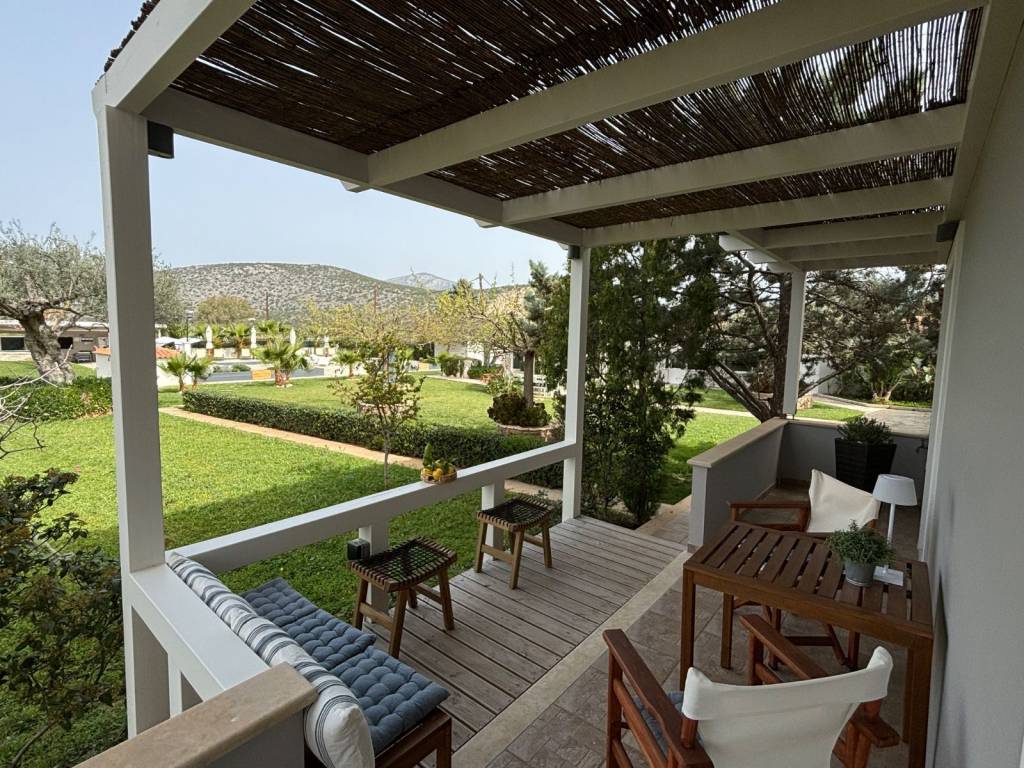 Situated just outside the picturesque fishing village of Koilada, only 800 meters away from ‘My Kilada Golf course’, we offer our beautiful unique villa with three separate spacious luxury suites spread over a beautiful estate of 5744m2. Surrounded by a beautifully well-maintained lush Mediterranean garden overlooking the pool, the green hills, and the bay of Koilada this is an extraordinary opportunity to own this piece of paradise. On the property, there is an exceptionally beautiful 100-year-old private water well that, through 3 natural freshwater streams, provides inexhaustible water for watering the entire garden and automatically refilling the swimming pool. The garden has an automatic smart irrigation system, ensuring lush greenery all year round. There is also a beautiful sectioned smart garden lighting system that gives the garden a fairytale-like atmosphere in the evening. Behind the parking lot, accessible via a private road with an automatic gate, is the olive grove with 38 olive trees that are also equipped with an automatic irrigation system. Also scattered throughout the grounds are citrus trees, pomegranate trees, kumquats, pistachio trees, artichokes, and herb plants. The main house is a warm and welcoming main residence with large windows that frame the lush garden views. The open-plan living area is centered around a rustic stone fireplace, creating a cozy yet elegant atmosphere. The adjacent dining area flows seamlessly into the space, perfect for hosting gatherings or intimate dinners. The main house with a large bedroom and bathroom gives you complete privacy on the property to retreat to in peace. Its tasteful décor and natural light complete this rare estate with both charm and functionality. Veranda Suite (55 m²) - A charming ground-floor suite with garden views, a private veranda, a kitchenette, a living room, a separate bedroom, a bathroom, and a bright, open atmosphere. Kοilada Sea View Suite (60 m²) - Enjoy your morning coffee as you gaze over the bay. This upper-level suite boasts panoramic sea views and a fresh, tropical-inspired design, plus a beautiful bathroom with a separate toilet. Also included is a kitchenette, dining, and sitting area. Garden Grill room (55 m²) - Located on the ground floor, this indoor grillroom features traditional beamed ceilings, a fireplace, a spacious pergola, and a relaxed, rustic elegance. It also includes a kitchenette, sitting, and dining area and is easily transformed into a third suite bedroom. Outdoors, the property features multiple charming areas around the pool and throughout the garden, perfect for relaxation, sunbathing, or enjoying peaceful moments in nature. It should also be mentioned that there are various storage options for garden tools, etc. Additionally, there is a garage and large linen room that also provides access to the wine cellar and storage for freshwater (90,000 liters). Everything is in excellent condition, very well maintained, and mostly made smart. The electrical installation is inspected and there are power points (also 360 watts) and water taps throughout the site. There is also an excellent camera system and WiFi everywhere on the site. The property is surrounded by some of the most sought-after destinations in the Peloponnese, which includes the charming fishing village of Koilada, where authentic tavernas and a leisurely pace create an inviting atmosphere, the cosmopolitan port town of Porto Heli just a short drive away with its excellent restaurants and vibrant summer nightlife, the traditional seaside town of Ermioni, renowned for its rich history, weekly markets and excellent local cuisine, and the iconic islands of Spetses and Hydra, both easily accessible by boat and perfect for day trips filled with culture, boutique shopping, and beautiful beaches. Whether you are looking to invest in this well-engineered and immaculate property to run it as a successful luxury bed and breakfast or create a spacious retreat for a large family, Villa Hylas offers flexibility, privacy, and long-term value in one of the most sought-after regions of Greece.