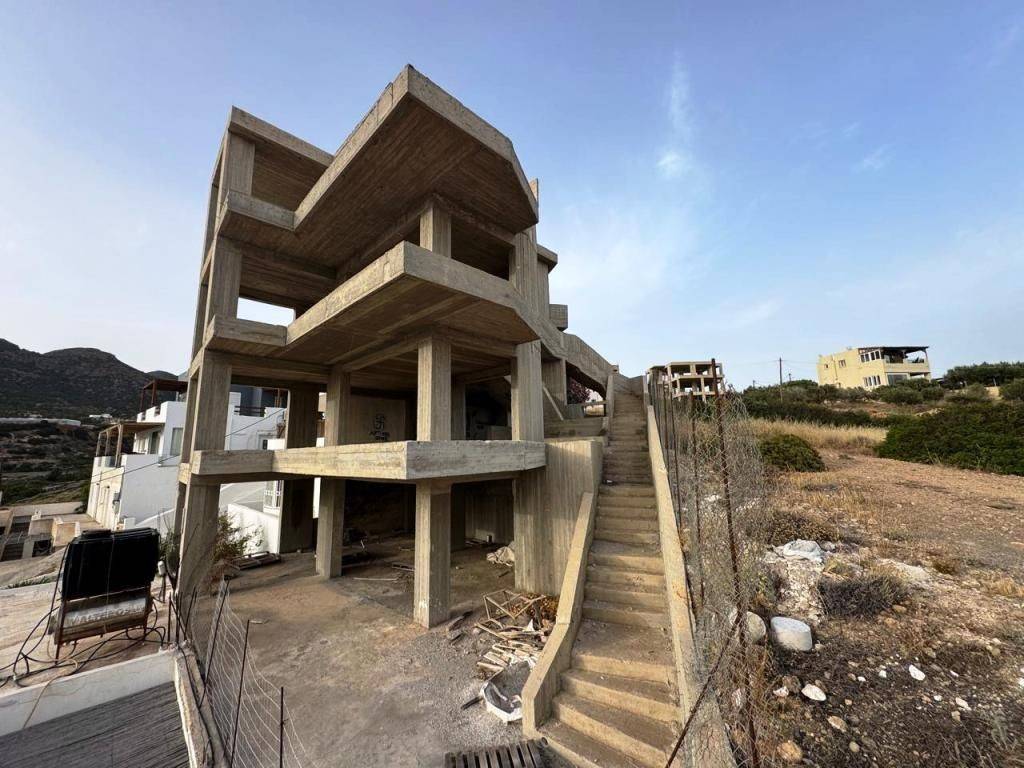 Μακρύ Γιαλός, Νοτιοανατολική Κρήτη: Σκελετός από μπετόν 4 διαμερισμάτων μόλις 500 μέτρα από τη θάλασσα. Το κτίριο είναι σε τρία επίπεδα, βρίσκεται σε οικόπεδο 189,32m2 συνολικά. Απολαμβάνει όμορφη θέα στη θάλασσα και απέχει μόλις λίγα μέτρα από όλες τις ανέσεις όπως καταστήματα, φαρμακεία, εστιατόρια κ.λπ. Το ισόγειο είναι ένα διαμέρισμα 60,74 m2 με ένα υπνοδωμάτιο, κουζίνα, μπάνιο, ενιαίο σαλόνι και αυλή εμβαδού περίπου 40,00 m2 με θέα στη θάλασσα. Όλο το διαμέρισμα είναι κλιματιζόμενο και θερμαινόμενο με κλιματισμό. Στον 1ο όροφο υπάρχει ένα άλλο διαμέρισμα 76,70 m2 με δύο υπνοδωμάτια, κουζίνα, μπάνιο, ενιαίο σαλόνι, μπαλκόνι εμβαδού 20,00 m2 με δίχτυα με θέα θάλασσα και αυλή εμβαδού 24,00 m2. Όλο το διαμέρισμα είναι κλιματιζόμενο και θερμαινόμενο με κλιματισμό. Το διαμέρισμα του 2ου ορόφου είναι 76,70 m2 με δύο υπνοδωμάτια, κουζίνα, μπάνιο, ενιαίο καθιστικό, μπαλκόνι συνολικής καθαρής επιφάνειας 20,00 m2 με θέα θάλασσα και μπαλκόνι εμβαδού 5,70 m2. Όλο το διαμέρισμα είναι κλιματιζόμενο και θερμαινόμενο με κλιματισμό. Τέλος, ο 3ος όροφος διαθέτει επίσης ένα διαμέρισμα 70,50 m2 με δύο υπνοδωμάτια, κουζίνα, μπάνιο, ενιαίο σαλόνι, μπαλκόνι συνολικής καθαρής επιφάνειας 26,90 m2 με θέα θάλασσα και μπαλκόνι εμβαδού 5,70 m2. Όλο το διαμέρισμα είναι κλιματιζόμενο και θερμαινόμενο με κλιματισμό.