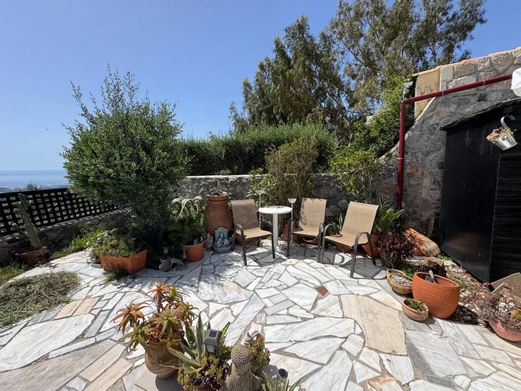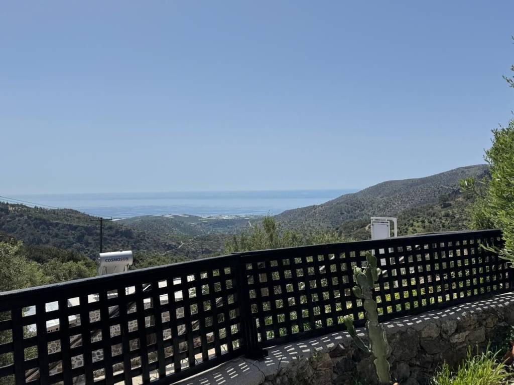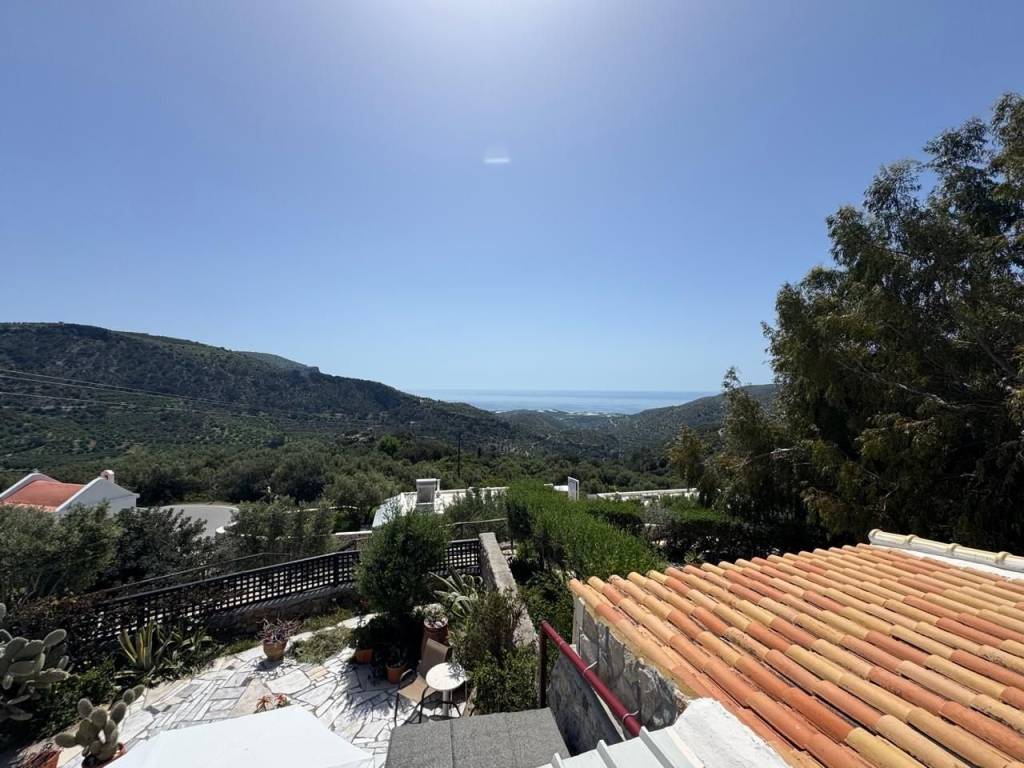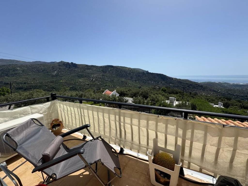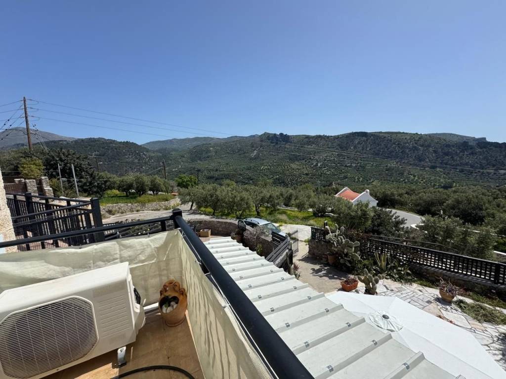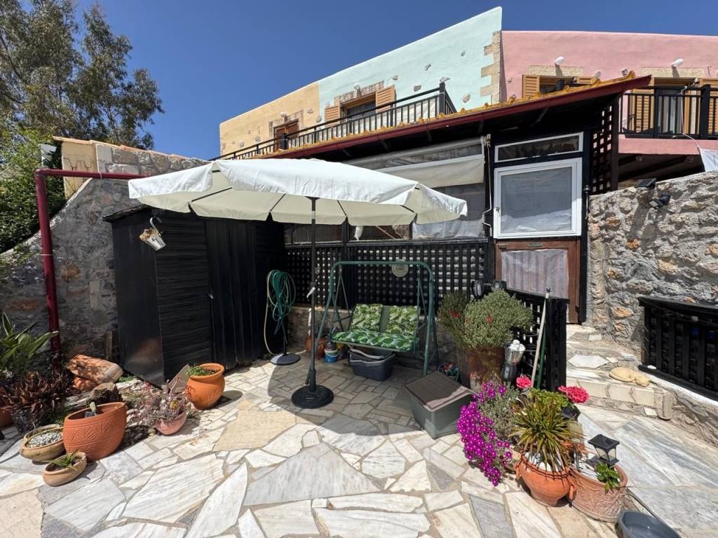 Stavrochori, Makry Gialos, South East Crete: A great house with yard and balcony just 7km from the sea. The property enjoys beautiful mountain and sea views. It is a two storey house of 61,74m2 in total, located on a plot of approximately 119.45m2. The ground floor is 30.74m2 consisting of an open kitchen area. Internal staircase lead to the upper floor which is 31m2 and consists of a bedroom, a shower/W.C room, another smaller bedroom currently used as an office area and a balcony enjoying sea views. Outdoors, is a lovely paved yard also enjoying mountain and sea views. The property offers A/C and all services are connected. Lastly, it is just 7km from the sea and from all amenities.