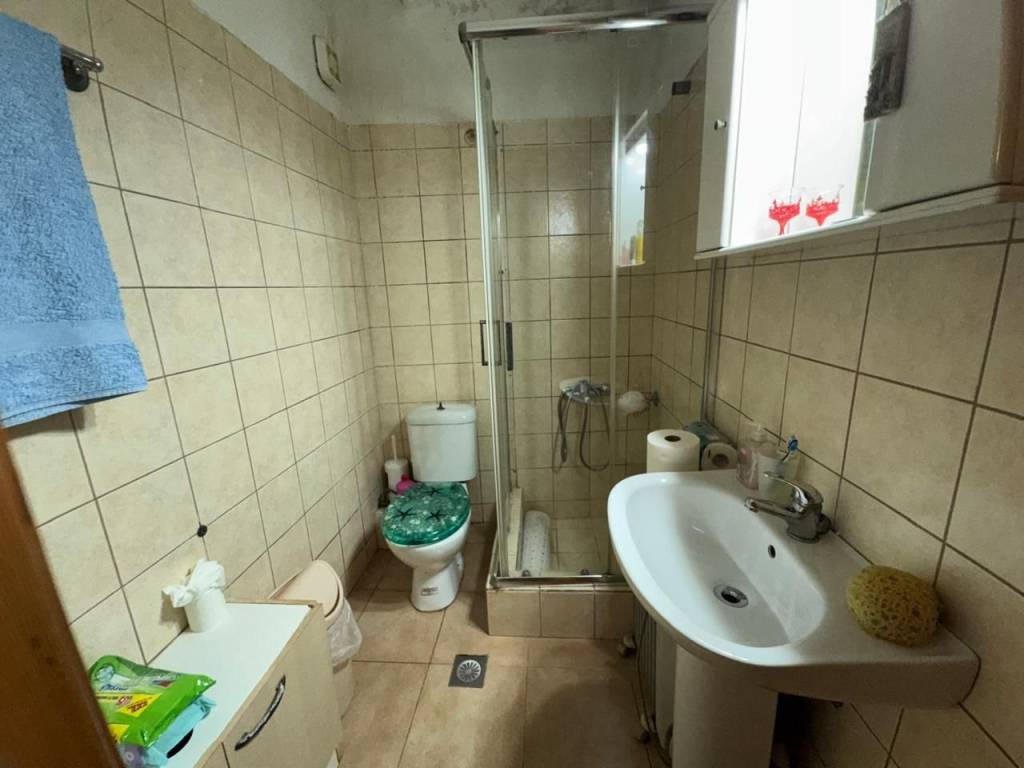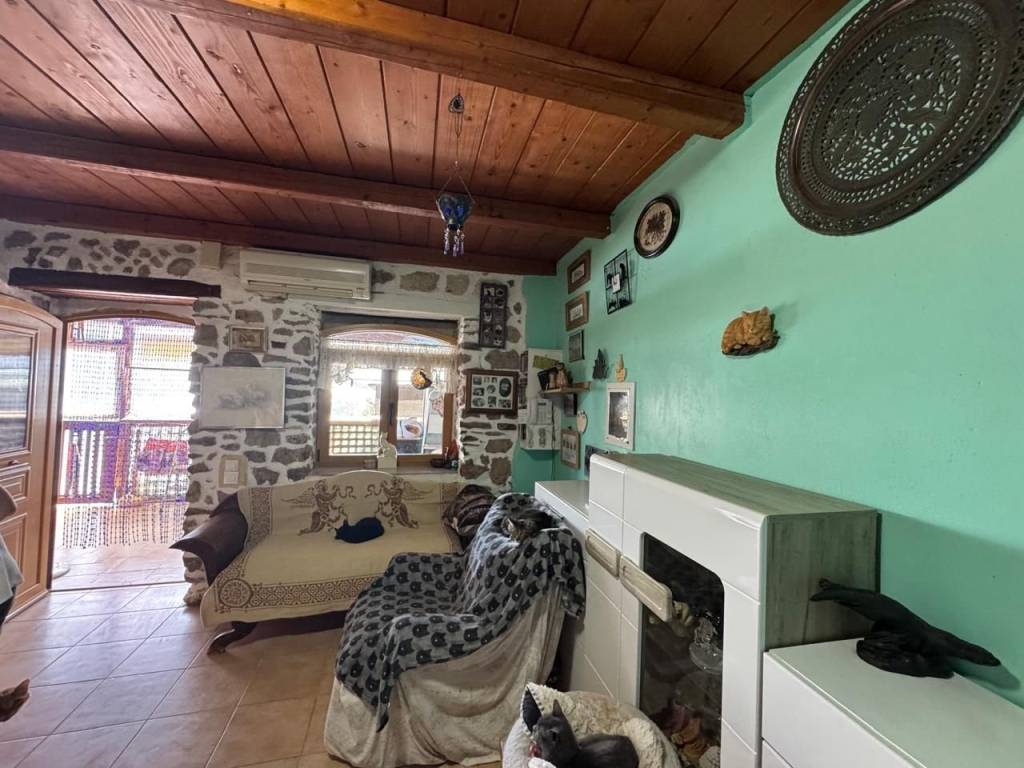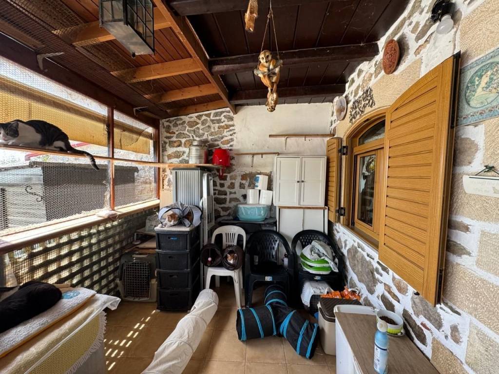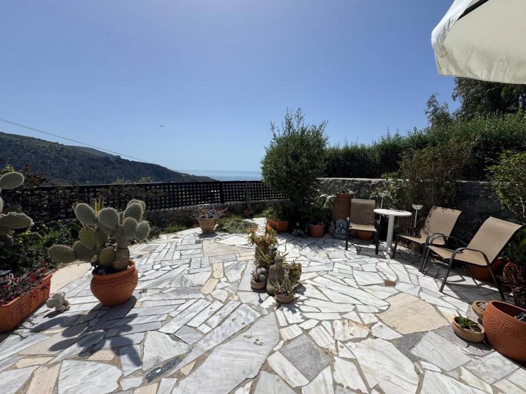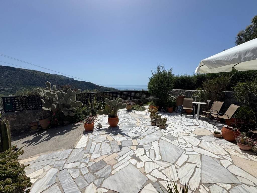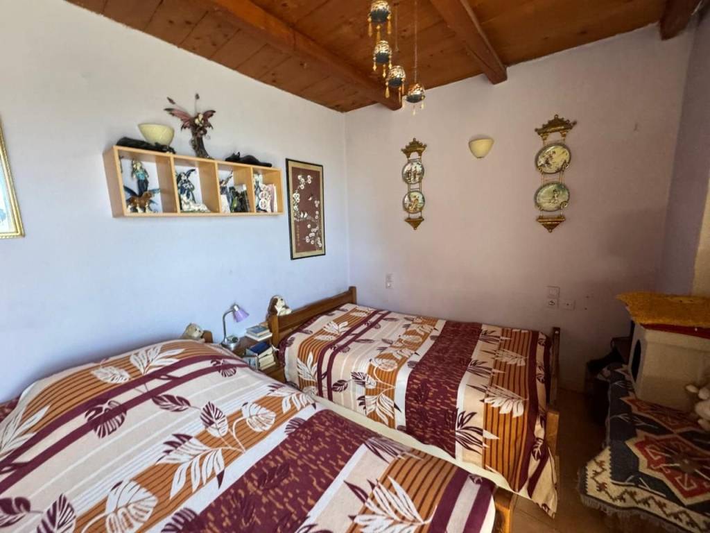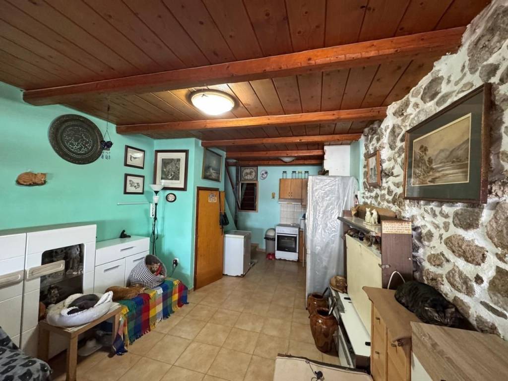 Stavrochori, Makry Gialos, South East Crete: A great house with yard and balcony just 7km from the sea. The property enjoys beautiful mountain and sea views. It is a two storey house of 61,74m2 in total, located on a plot of approximately 119.45m2. The ground floor is 30.74m2 consisting of an open kitchen area. Internal staircase lead to the upper floor which is 31m2 and consists of a bedroom, a shower/W.C room, another smaller bedroom currently used as an office area and a balcony enjoying sea views. Outdoors, is a lovely paved yard also enjoying mountain and sea views. The property offers A/C and all services are connected. Lastly, it is just 7km from the sea and from all amenities.